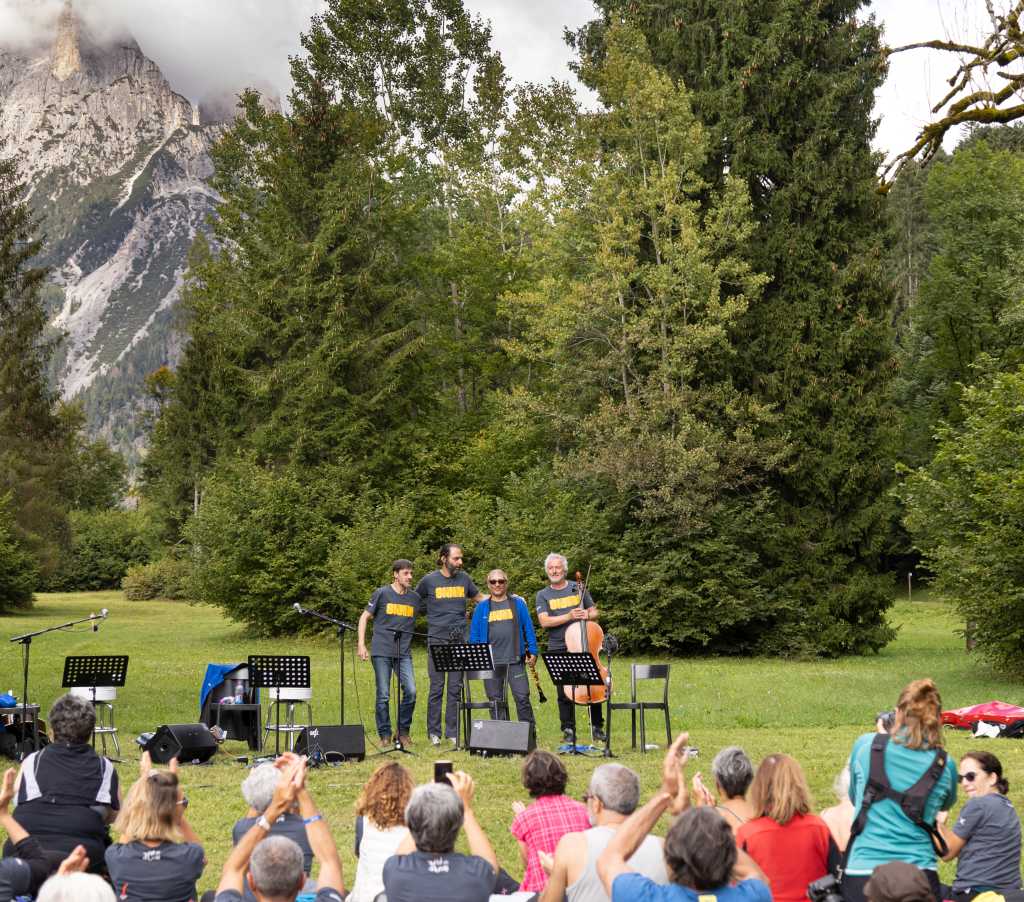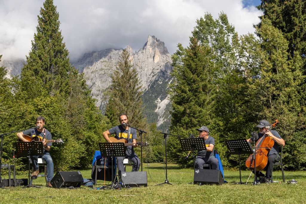 Oggi a Villa Welsperg in Val Canali, a conclusione del Trekking nelle Pale di San Martino, Neri Marcorè, Mario Brunello, Gabriele Mirabassi e Domenico Mariorenzi hanno dato vita ad un viaggio sonoro in quindici tappe, tante quante le canzoni - piccoli gioielli in musica – create da Testa