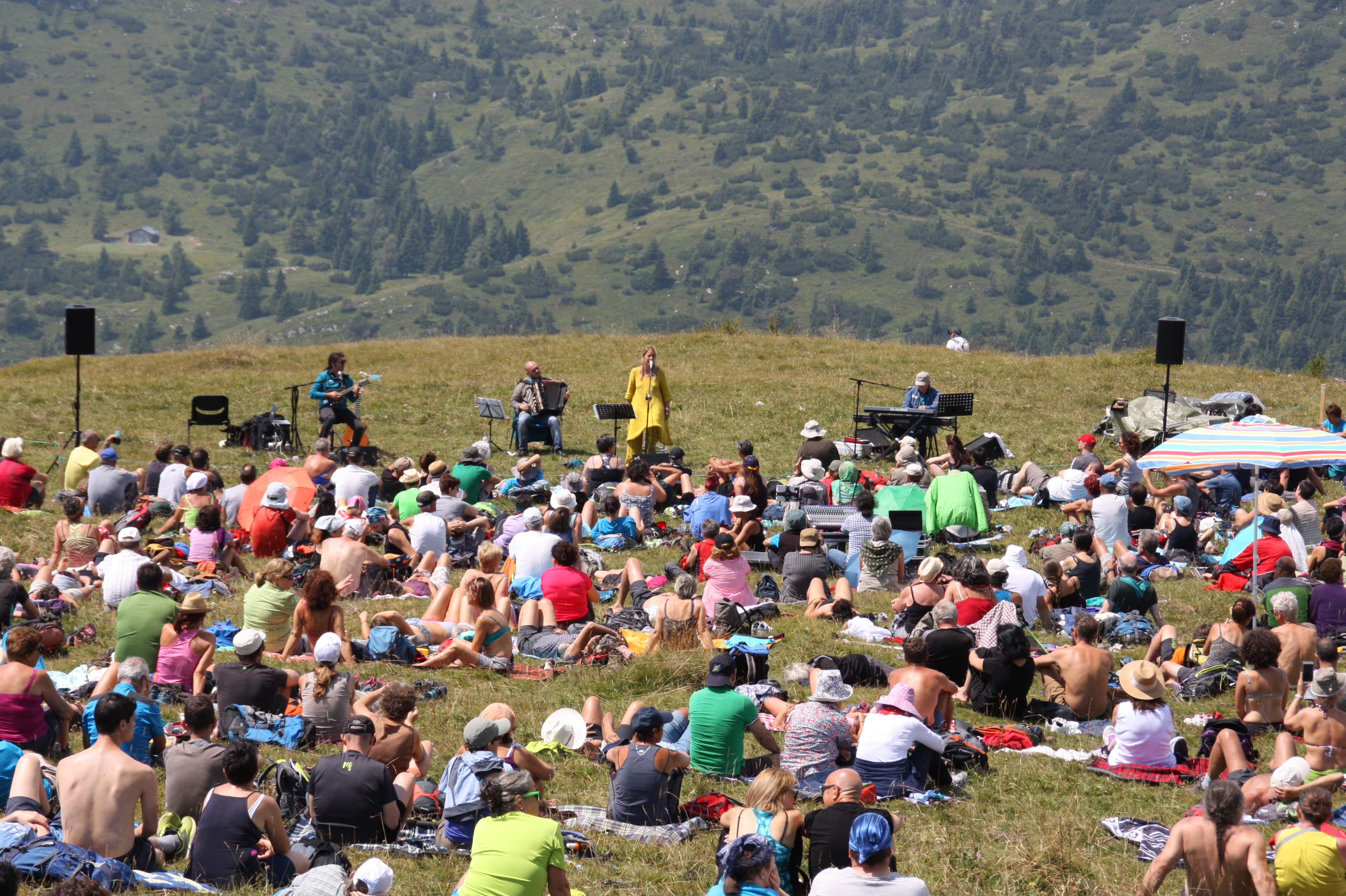 Per raccontare l'intenso concerto che Ginevra Di Marco ha portato - oggi 27 luglio - a I Suoni delle Dolomiti, sull'Altopiano della Paganella, basterebbe l'ultima e partecipatissima canzone: "Solo le pido a Dios", con tutto il pubblico in piedi a battere le mani a ritmo. Un brano dedicato alla giustizia, alla ricerca della pace, al non essere indifferenti al dolore degli altri. Tutt'intorno il panorama del Brenta con le cime velate dalle nubi o la valle dei Laghi che si tuffa nel Lago di Garda, o i verdi pascoli in quota punteggiati dagli abeti che hanno fatto da scenario a una storia in note, quella della vita di Mercedes Sosa, grandissima cantora argentina raccontata attraverso alcune delle sue più importanti canzoni.