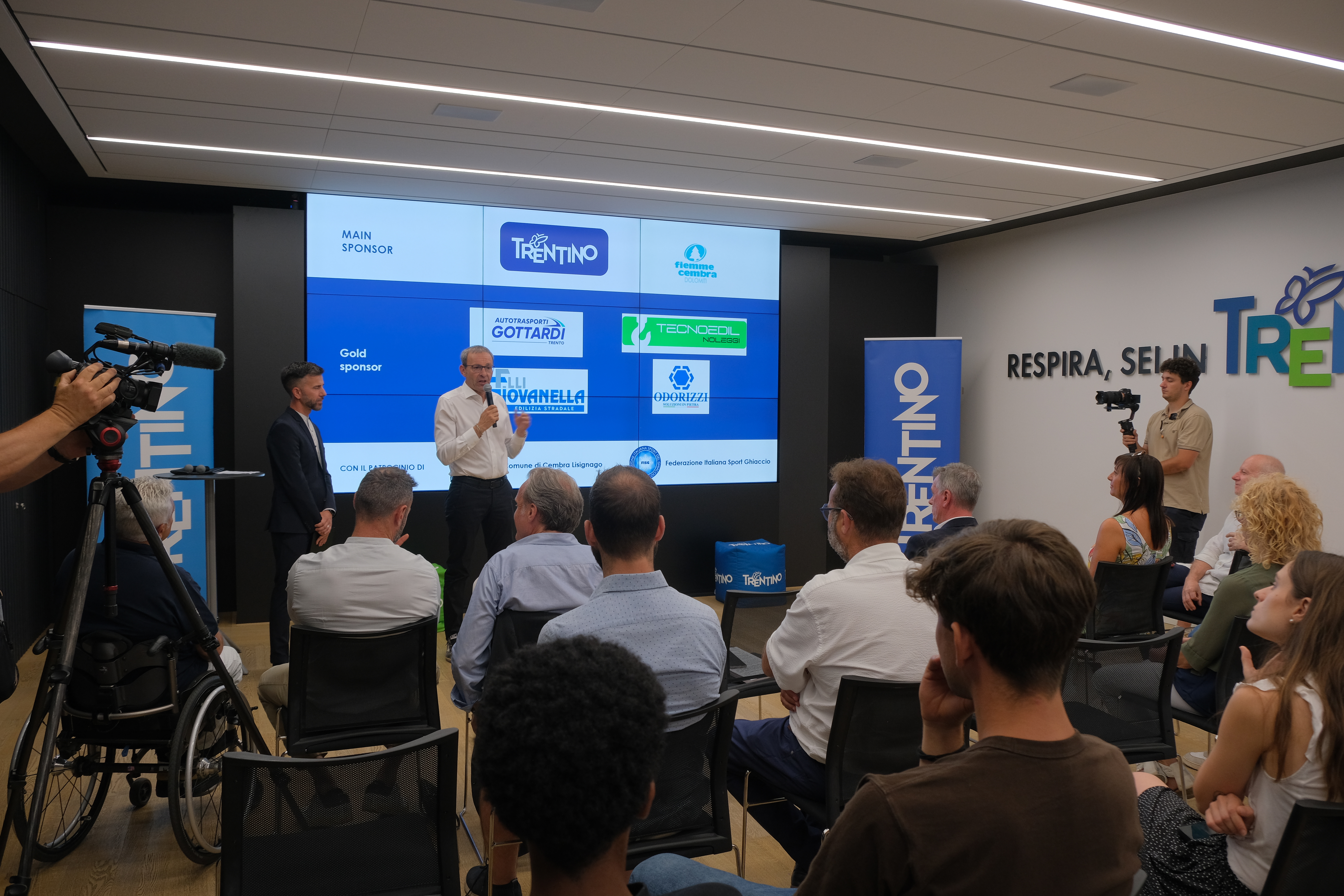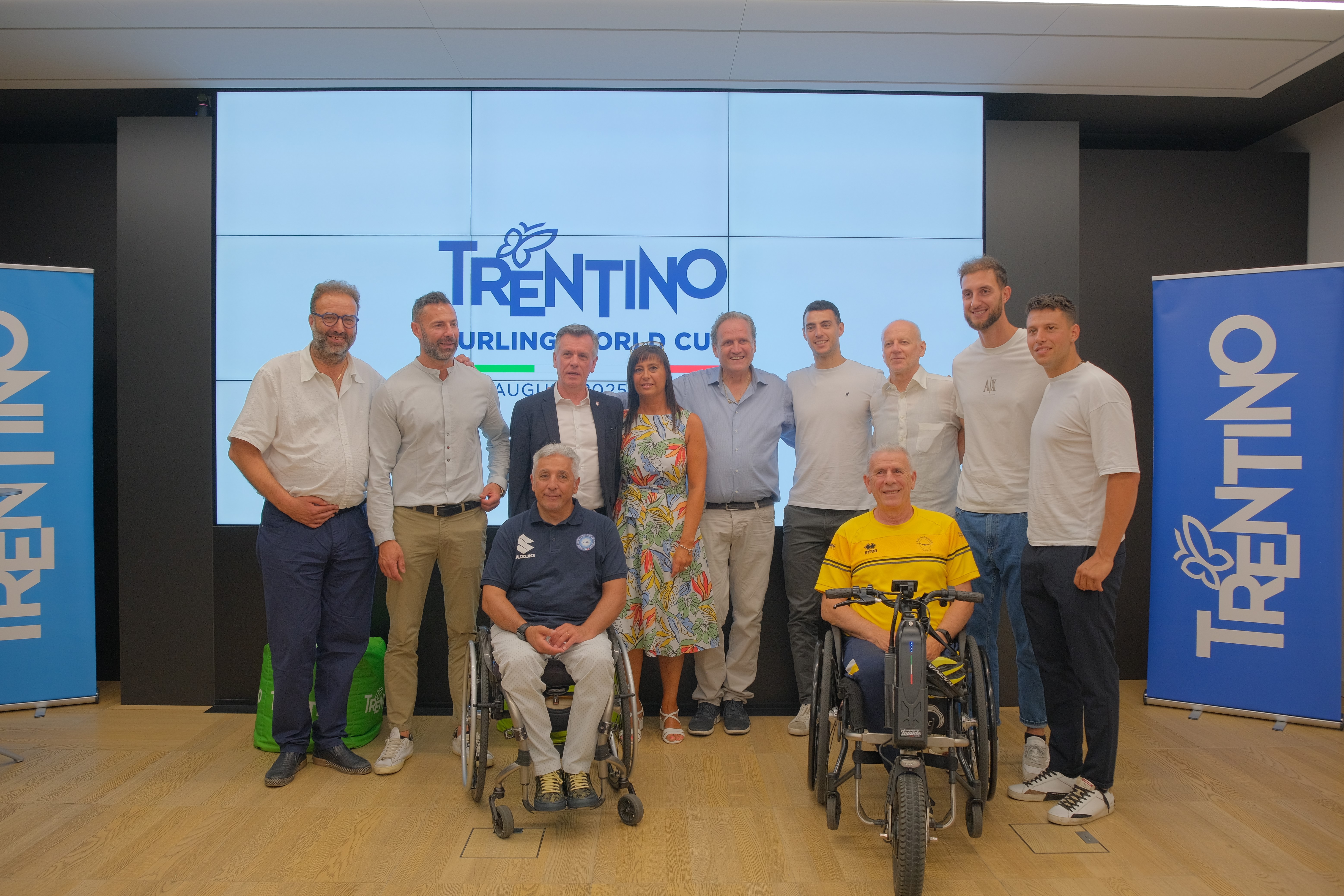 La Trentino Curling World Cup è stata presentata nella mattinata di mercoledì 25 giugno nella sede di Trentino Marketing alla presenza tra gli altri dell’assessore provinciale al turismo, artigianato, commercio, caccia e pesca Roberto Failoni, dell’amministratore delegato di Trentino Marketing Maurizio Rossini, del direttore dell’APT Fiemme Cembra Giancarlo Cecatti, della sindaca di Cembra-Lisignago Alessandra Ferrazza, del campione olimpico Amos Mosaner, del consigliere federale FISG Giuseppe Antonucci di Massimo Eccel, vicepresidente del Coni Trento e di Michele Ciresa, presidente del Comitato FISG Trentino e presidente del Comitato Organizzatore, chiamato ad accogliere i partecipanti accanto a Tiziano Odorizzi, referente organizzativo dell’evento. Presenti in sala anche altri due rappresentanti del Team Retornaz: