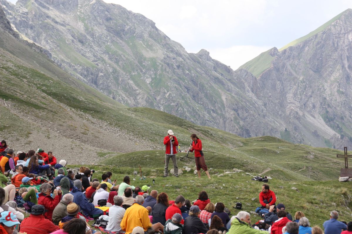 Qualcosa di simile è accaduto quest'oggi all'appuntamento de I Suoni delle Dolomiti a Passo delle Selle, in Val di Fassa, e a renderlo possibile è stata la musica alquanto fuori dagli schemi che hanno proposto due musicisti originali e unici come Markus Stockhausen e Tara Bouman. Lì, nella conca chiusa tra le rocce scure dei Monzoni da un lato e quelle chiare del Costabella dall'altro, il duo si è cimentato nel suo progetto "Moving sounds" per proporre quella che lo stesso Stockhausen ha definito “musica intuitiva”. Cosa fosse questa musica intuitiva lo si è capito subito con tromba e clarinetto a inseguirsi tra loro e soprattutto a inseguire il suono dell'ambiente. Una sorta di creazione on stage, un po' improvvisazione, un po' esecuzione di partiture ma soprattutto interazione e ricerca di energia e “risposta” - questa l'altra parola chiave nelle spiegazioni del musicista tedesco - nel paesaggio circostante e nel pubblico. Non si è trattato di usare tutto questo come semplice spunto per l'ispirazione ma di un dialogo quasi fisico, fatto di onde sonore, echi, azioni e reazioni.