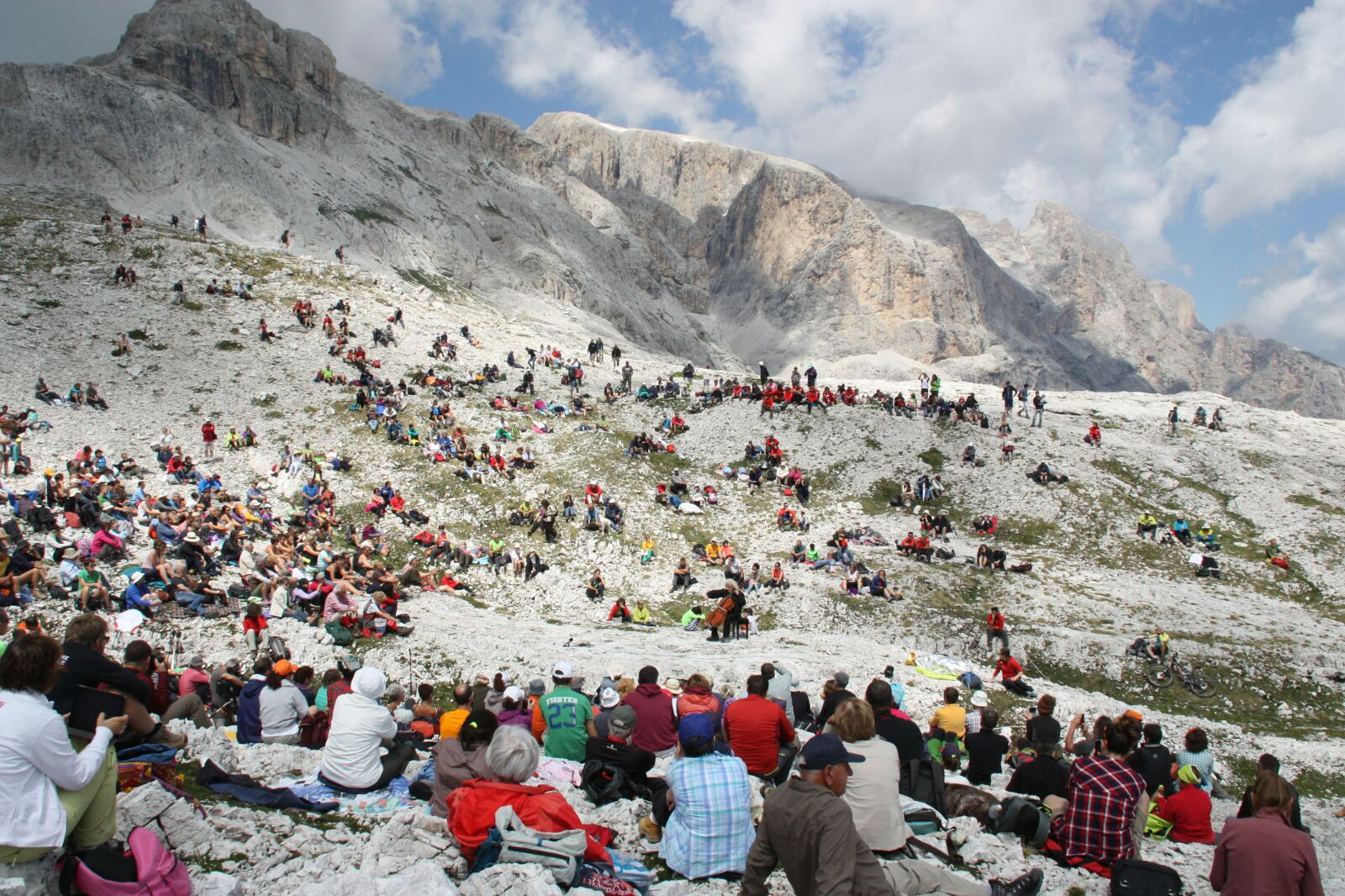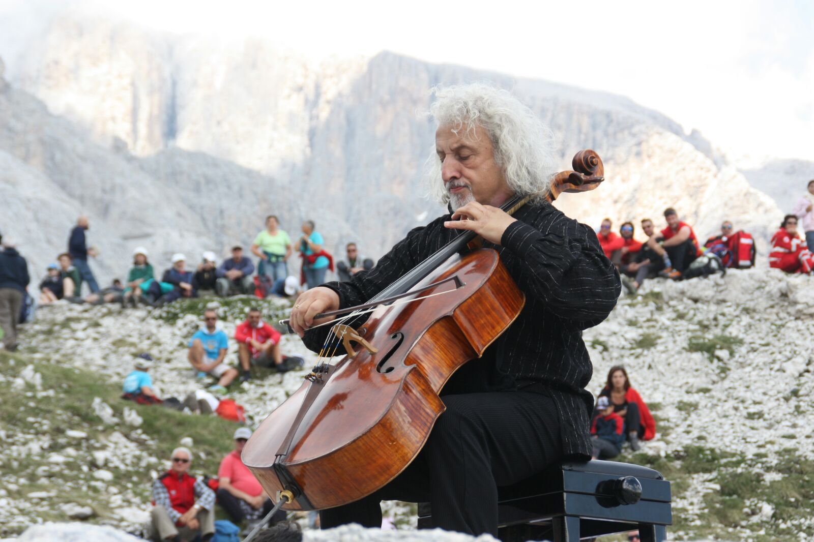 Maisky l'aveva già dichiarato "Bach è perfetto per un evento del genere. La sua musica si adatta ad ogni contesto ambientale", ma probabilmente non si aspettava di ritrovarsi tra immense architetture di pietra e la sua espressione stupita e ammirata è stata più loquace di un intero discorso. Poi è arrivato il tempo della musica con i sette movimenti delle due Suite, seguite in grande silenzio e attentamente da tutti i presenti. E se c'è una cosa che la musica di Bach riesce a trasmettere a chiunque si trovi ad ascoltarla nei pressi delle vette è la sua capacità di farsi tutt'una con le mille altezze e profondità, le conche, le vallette e le pareti verticali. Probabilmente molti dei presenti porteranno con sé oltre al ricordo della musica anche quello della chioma bianca e fluente del maestro, la sua aria concentrata, l'immagine dell'archetto che si muove veloce.