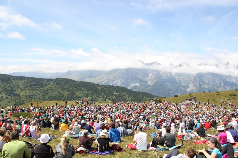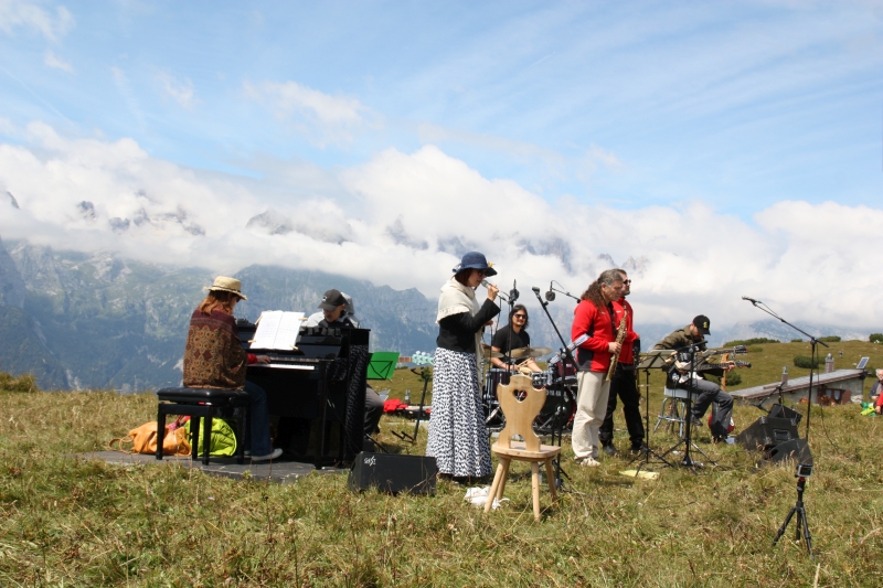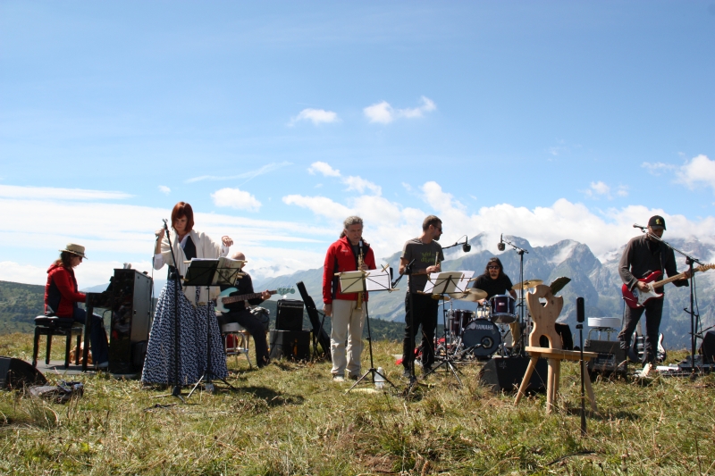 De Andrè a oltre duemila metri di quota. Non è la prima volta che capita quest'anno, ma con Marcorè proprio all'apertura de I Suoni delle Dolomiti il tempo aveva fatto le bizze coprendo con le nubi il cielo. Oggi, invece, sull'Altopiano della Paganella lo spettacolo della natura ha sicuramente incantato e catturato i tanti, tantissimi, appassionati saliti in quota (3500 persone). Proprio davanti allo sguardo - perfetta scenografia alle spalle dei musicisti - il Brenta in tutta la sua imponenza, coperto ancora da nubi veloci che si sono via via dissipate durante il concerto. A valle, verso sud, la Valle dei Laghi con i suoi splendidi specchi d'acqua dal Lago di Toblino al lago di Cavedine fino al Lago di Garda. In un semplice movimento dello sguardo si poteva passare dal clima mediterraneo del Benaco ai ghiacciai delle cime più alte. E in uno scenario del genere anche la musica è stata all'altezza con un gruppo di musicisti fuoriclasse che assieme alla cantante Cristina Donà ha condotto il pubblico in un viaggio attraverso le canzoni di Fabrizio De André. Non si è trattato di un semplice omaggio, perché il combo ha prodotto delle armonizzazioni molto originali tra il jazz, il rock e il blues, senza dimenticare la canzone d'autore e alcuni inserti esotici e folk di varia provenienza. Un inno alla libertà, al mondo femminile, "mai raccontato abbastanza" ha spiegato la Donà, presentatasi al microfono con un cappellino e un vestito dall'eleganza antica. Attorno a lei Xavier Girotto al sax, Fabrizio Bosso alla tromba, Saverio Lanza alla chitarra, Enzo Pietropaoli al basso, Cristiano Calcagnile alla batteria e percussioni e Rita Marcotulli al pianoforte. Un combo di assoluto valore che ha saputo reinterpretare in modo mirabile le armonie e le melodie di Faber abbinando fedeltà all'insieme con la grande libertà performativa, quella libertà che viene dal jazz - elemento comune a tutti gli strumentisti. Lo si è capito fin dall'inizio nella versione lenta e pensosa di "Amore che vieni, amore che vai", cui è seguita nelle movenze notturne e dark, poi virate verso il jazz travolgente, di "Ho visto Nina volare". Ancora rock che poi sfuma in jazz, quasi diretto dalla voce vellutata di Cristina Donà, per "Hotel Supramonte".