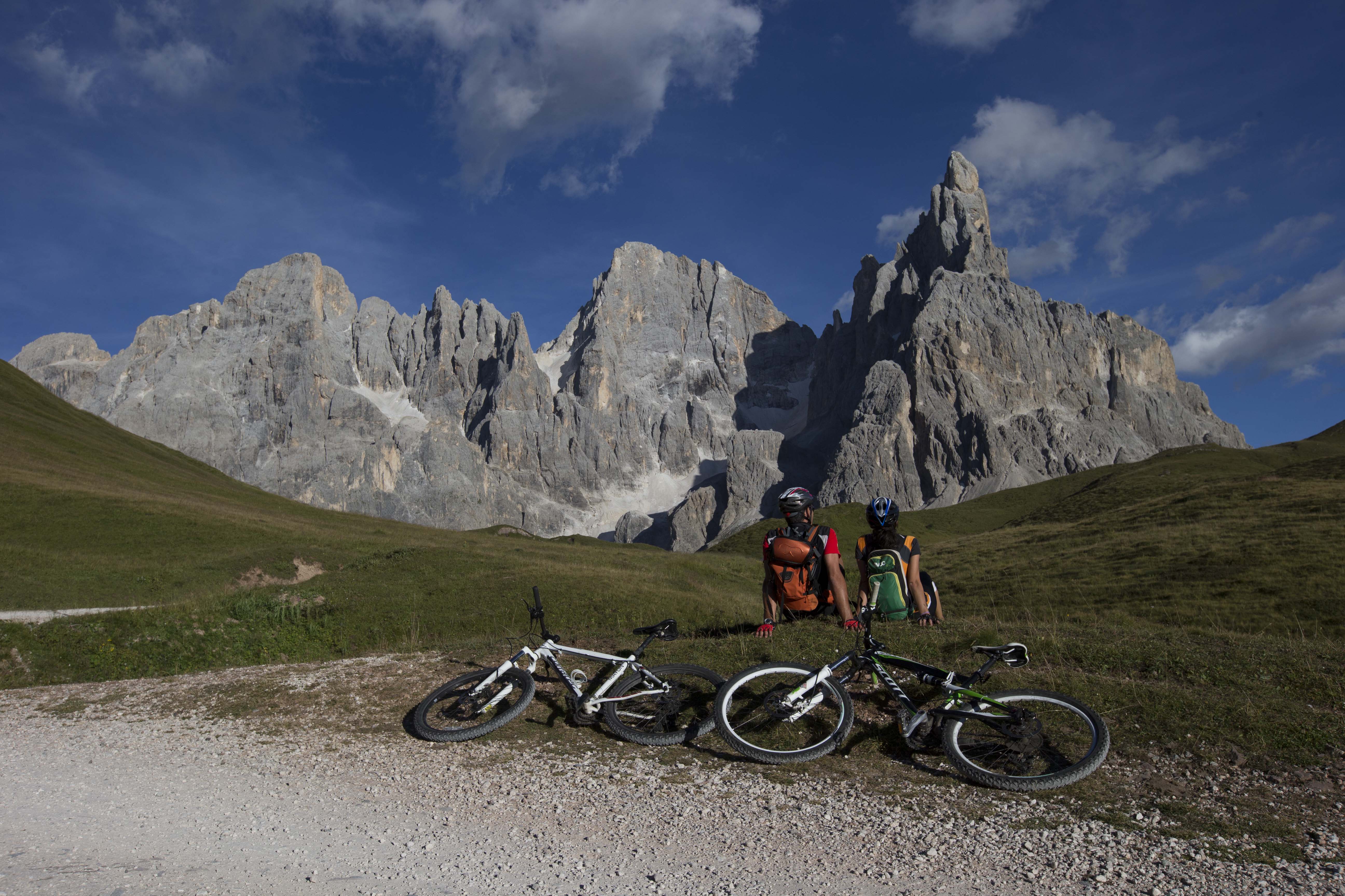 Si pedala in una cornice spettacolare che muta in continuazione il proprio orizzonte, ad ogni forcella in quota e ad ogni versante. Prima sotto le pareti porfiriche del Gruppo del Lagorai, poi al cospetto delle Pale di San Martino patrimonio dell’umanità UNESCO.