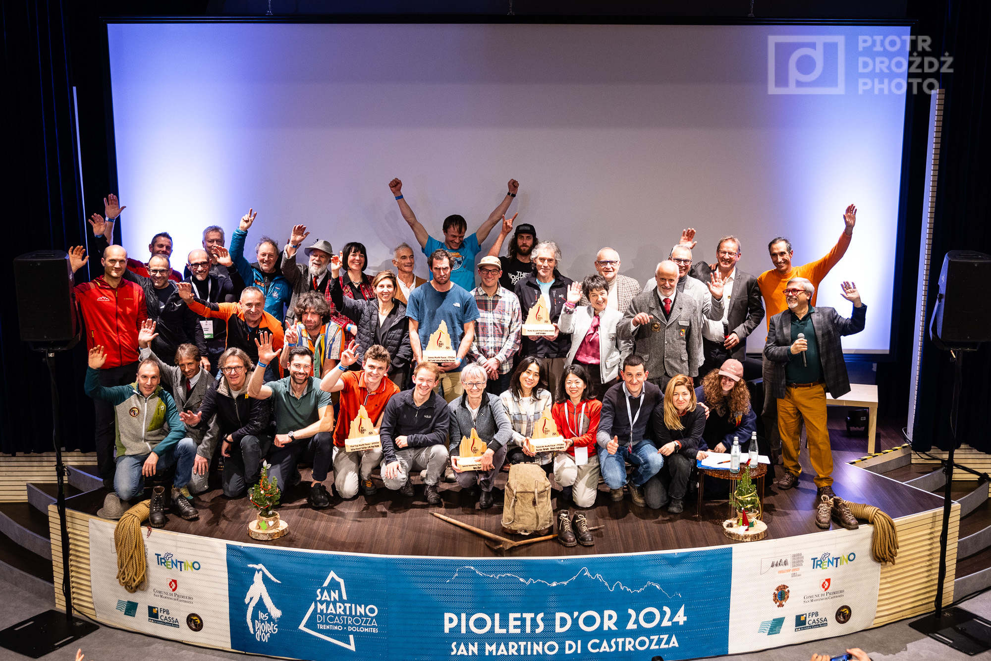 Una partecipata cerimonia di premiazione nella Sala Congressi di San Martino di Castrozza ha chiuso i Piolets d’Or 2024, prestigioso evento internazionale dedicato all’alpinismo per la prima volta organizzato in Trentino e nelle Dolomiti. I Piolets d'Or (in italiano “piccozze d’oro”), premi istituiti nel 1991 dai francesi Guy Chaumereuil e Jean-Claude Marmier e assegnati anche quest’anno dal Groupe de Haute Montagne (GHM) per le migliori imprese alpinistiche realizzate nel 2023, sono considerati il massimo riconoscimento alpinistico a livello mondiale, assegnati da una giuria di alpinisti e giornalisti di fama internazionale.