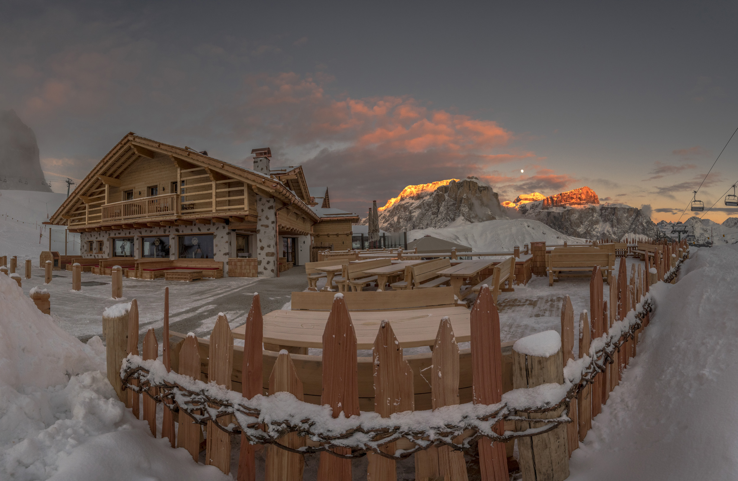 Le terrazze-solarium dei rifugi in quota, sono per lo più accessibili anche ai non sciatori e a quanti sono in cerca dell’abbronzatura perfetta. In molti di questi rifugi si può anche pernottare e per chi sceglie una camera con vista sulle montagne il premio sarà duplice: oltre ad ammirare tramonti e albe sulle vette innevate, anche il privilegio di scivolare pressoché in solitudine nei colori del mattino lungo le piste appena preparate dai gattisti. Tra le circa 50 strutture disponibili nei diversi comprensori bianchi, in Val di Fassa, sulle piste tra Canazei, Col Rodella e Campitello, le novità più importanti si trovano al rifugio Salei: camere e suite rinnovate e rese ancor più confortevoli, vista sulle Dolomiti (Gruppo del Sella, Sassolungo, Marmolada), un’ampia area wellness con affaccio sulle piste da sci e un’ulteriore sala ristorante. Si raggiunge direttamente dalle piste oppure da Passo Sella.