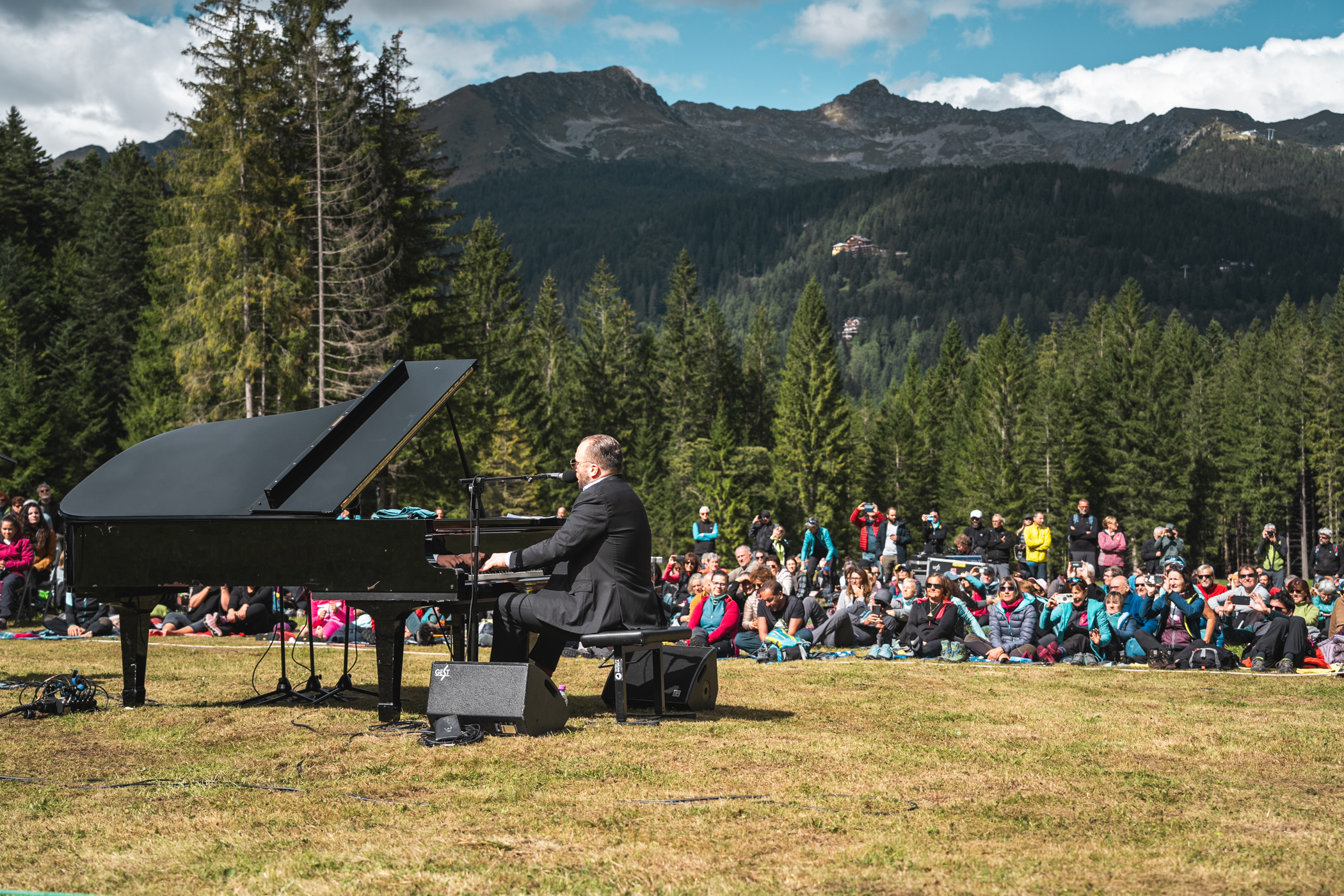 All’inizio di un’altra settimana all’insegna di una grande varietà di proposte musicali, il Popolo deI Suoni delle Dolomiti è stato abbracciato e travolto da quel fiume in piena di note che è l'estro musicale di Raphael Gualazzi. Oggi, sui prati dell’alpeggio di Malga Brenta Bassa, al cospetto del Crozzòn di Brenta, Cima Margherita e del Campanil Basso, questo popolo ha cantato applaudito, ballato e tenuto il ritmo con tutto l'entusiasmo di un concerto reso ancora più speciale ed inclusivo grazie a Remoove che ha reso fruibile il festival anche a persone con disabilità motoria o persone sorde e ipovedenti.