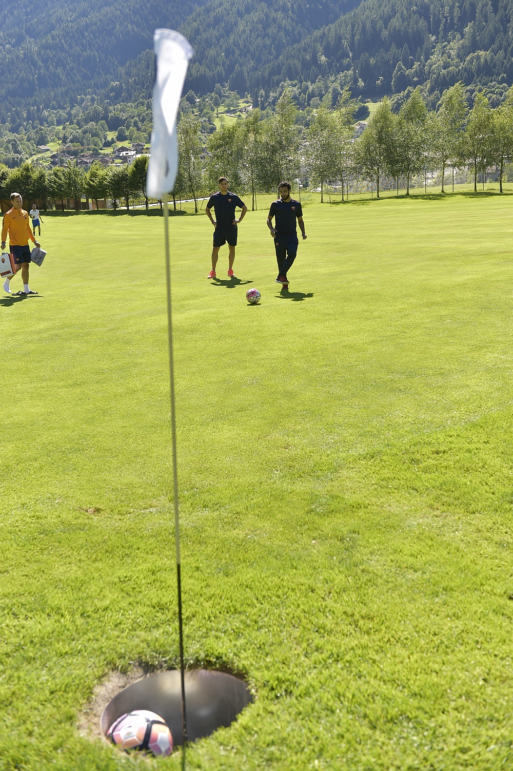 Questo pomeriggio, invece, il difensore greco Manolas e l’attaccante egiziano Salah hanno avuto l’occasione di cimentarsi in un’attività sportiva emergente, il foot-golf. Il Golf Club Rendena, a pochi chilometri di distanza da Pinzolo, è infatti attrezzato per la pratica di questa inedita e curiosa disciplina che fonde il calcio con il golf. I calciatori si sono misurati tra le buche del campo da golf cercando di completare il percorso con meno colpi possibili.