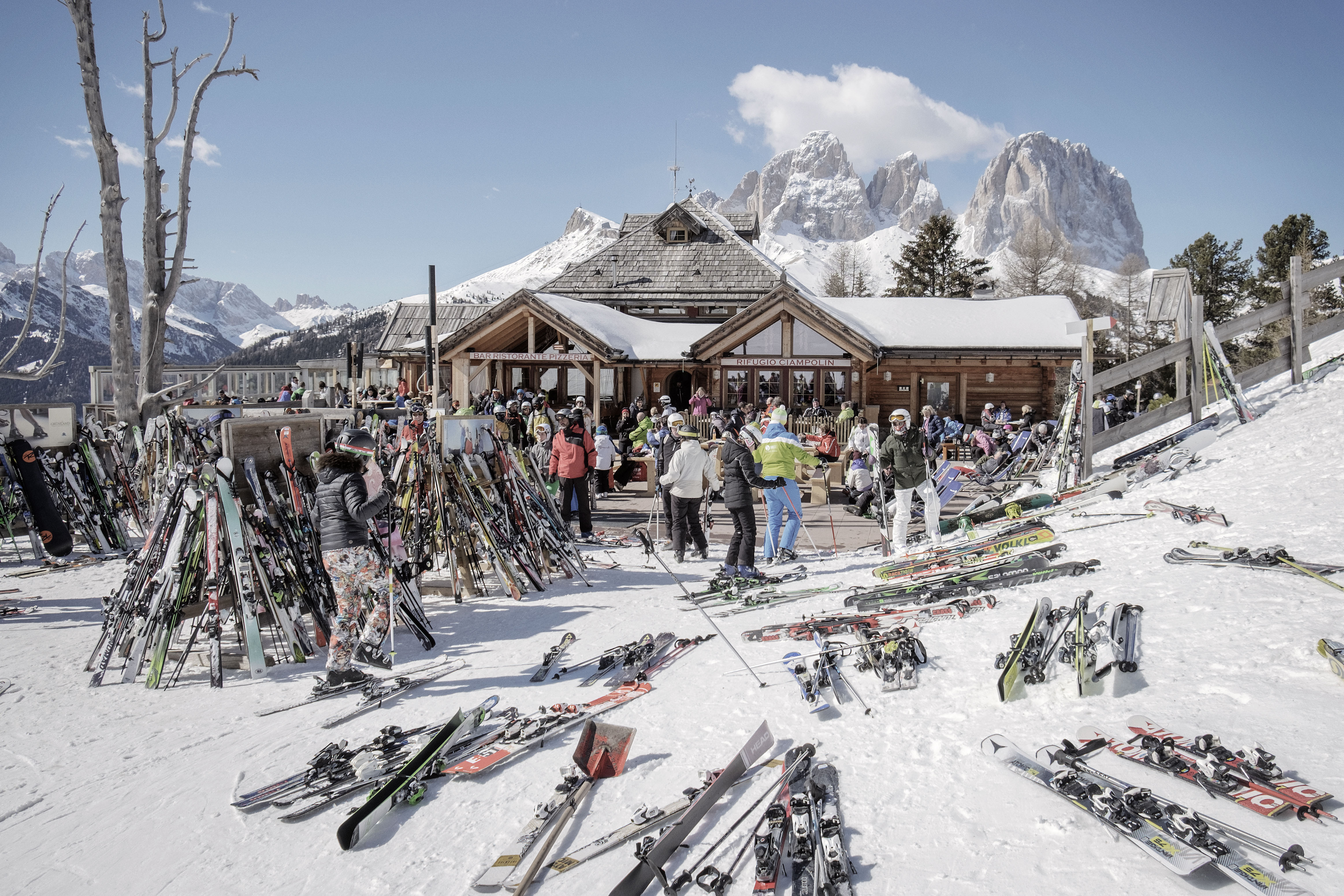 In Val di Fassa si può trascorrere una intera giornata sugli sci collegando le più belle skiarea dell’alta valle. Partendo da Pozza di Fassa si sale sul Buffaure e dopo una colazione con vista sul Catinaccio si percorrono le piste del Panorama Skitour fino alla Conca del Ciampàc e poi una picchiata lungo la pista nera fino ad Alba di Canazei. Una moderna e panoramica funivia ci riporta in alto direttamente nel cuore della skiarea del Belvedere di Canazei per ammirare un panorama a 360° di cime dolomitiche: Marmolada, Pordoi, Sella e Sassolungo. Si scivola sulle ampie piste al sole fino alla zona del Col Rodella ai piedi del Sassolungo. Esclusivo, affacciato sulle Dolomiti della val di Fassa, il Fienile Monte, si raggiunge dalle piste sul percorso del famoso Sellaronda. Glamour pacato, atmosfera intima e rilassata, caratterizzano questo locale il cui ristorante con meno di trenta coperti, propone piatti gourmet a 2.260 metri di altitudine. Da non perdere la vista sulle Dolomiti dalle poltrone lounge, che al tramonto regalano lo spettacolo dell’enrosadira.