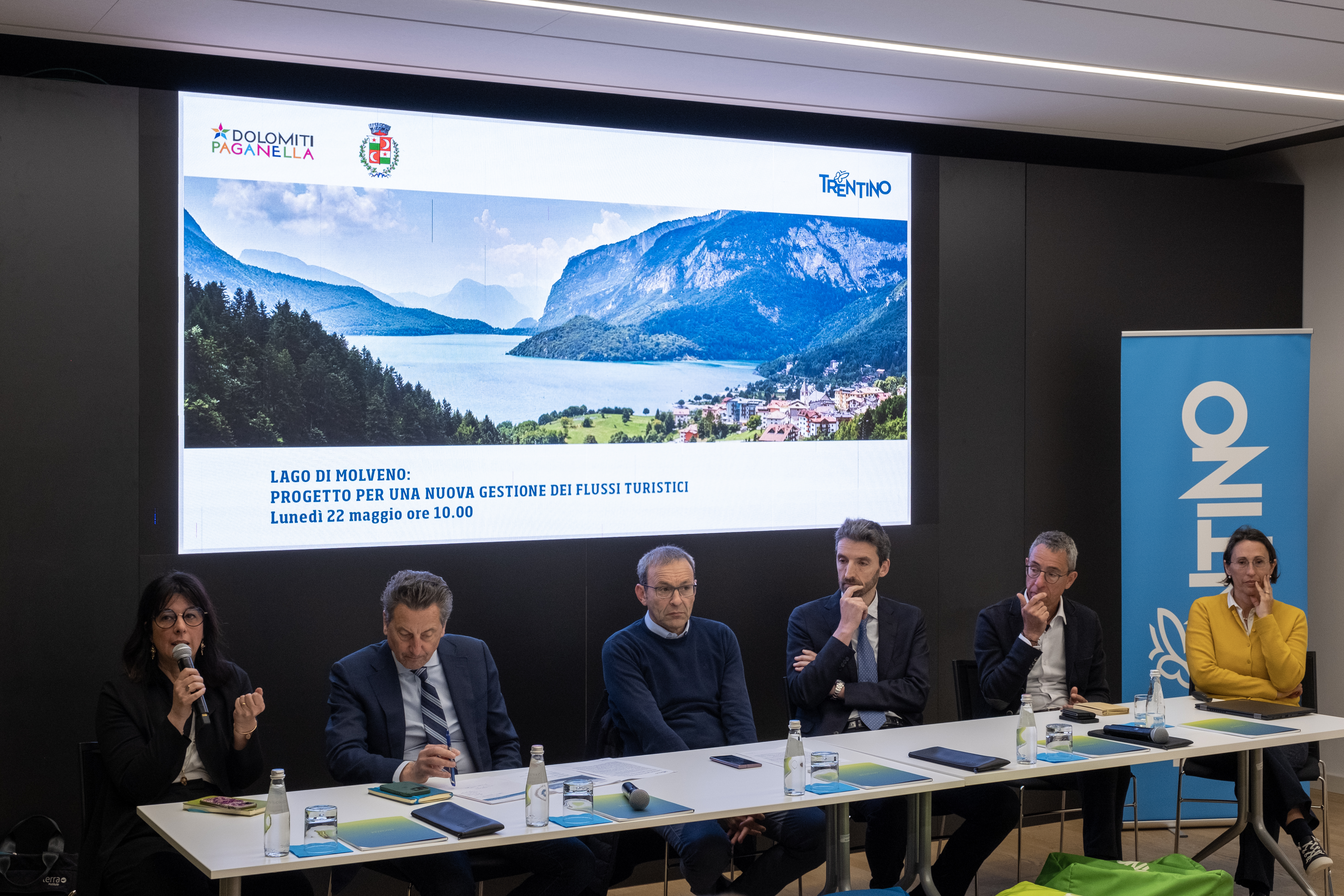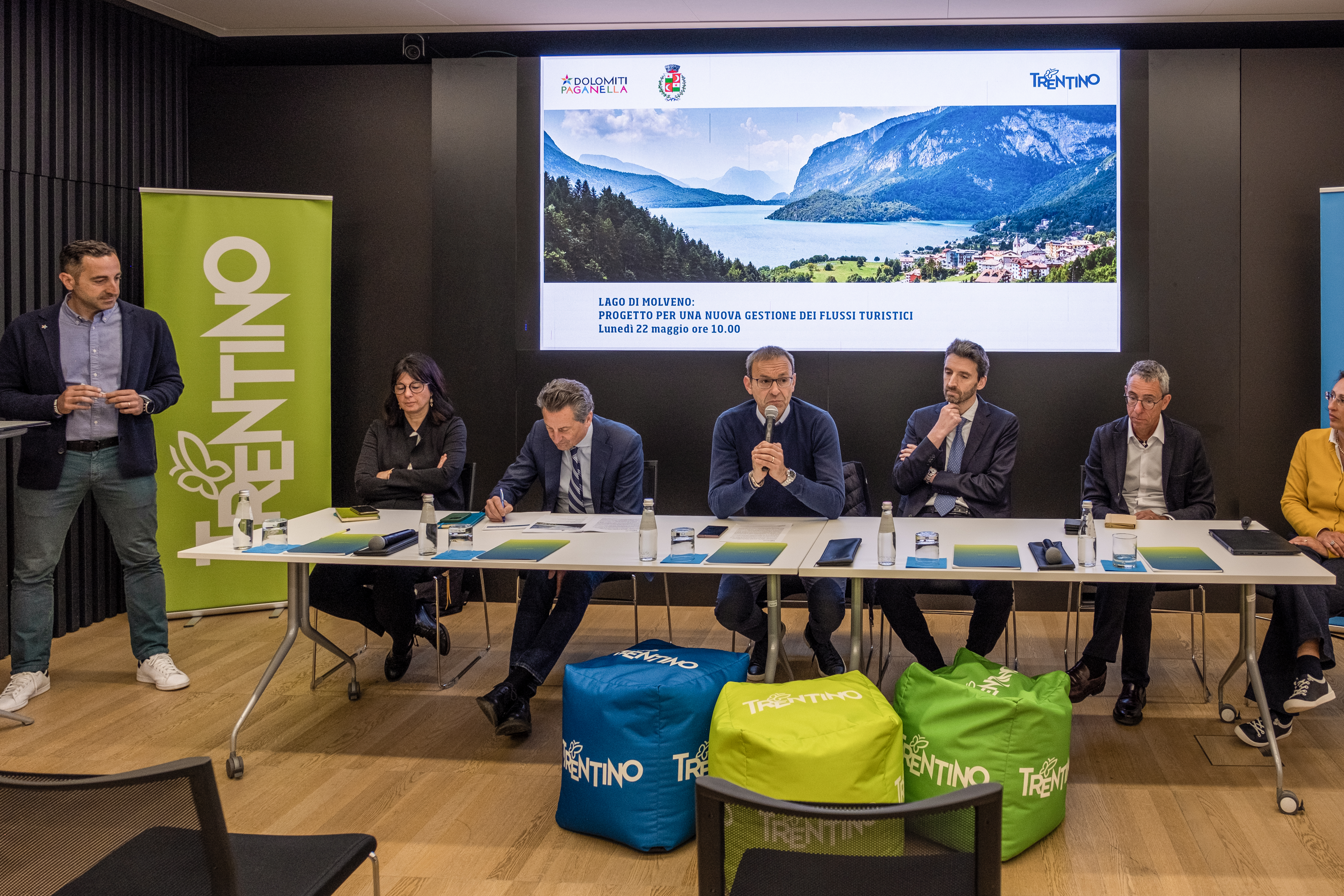 I primi passi del lavoro sono stati presentati questa mattina presso Trentino Marketing dall’Assessore provinciale al Turismo Roberto Failoni, dall’Amministratore Delegato di Trentino Marketing Maurizio Rossini, dalla responsabile Area Agenzie Territoriali Giulia Dalla Palma, da Michele Viola e da Luca D’Angelo, presidente e direttore dell’APT Dolomiti Paganella, da Matteo Sartori, sindaco di Molveno e da Francesca Ierace di Terra Institute la società altoatesina che ha avviato il monitoraggio dei dati utili a definire la capacità di carico per l’area di Molveno.