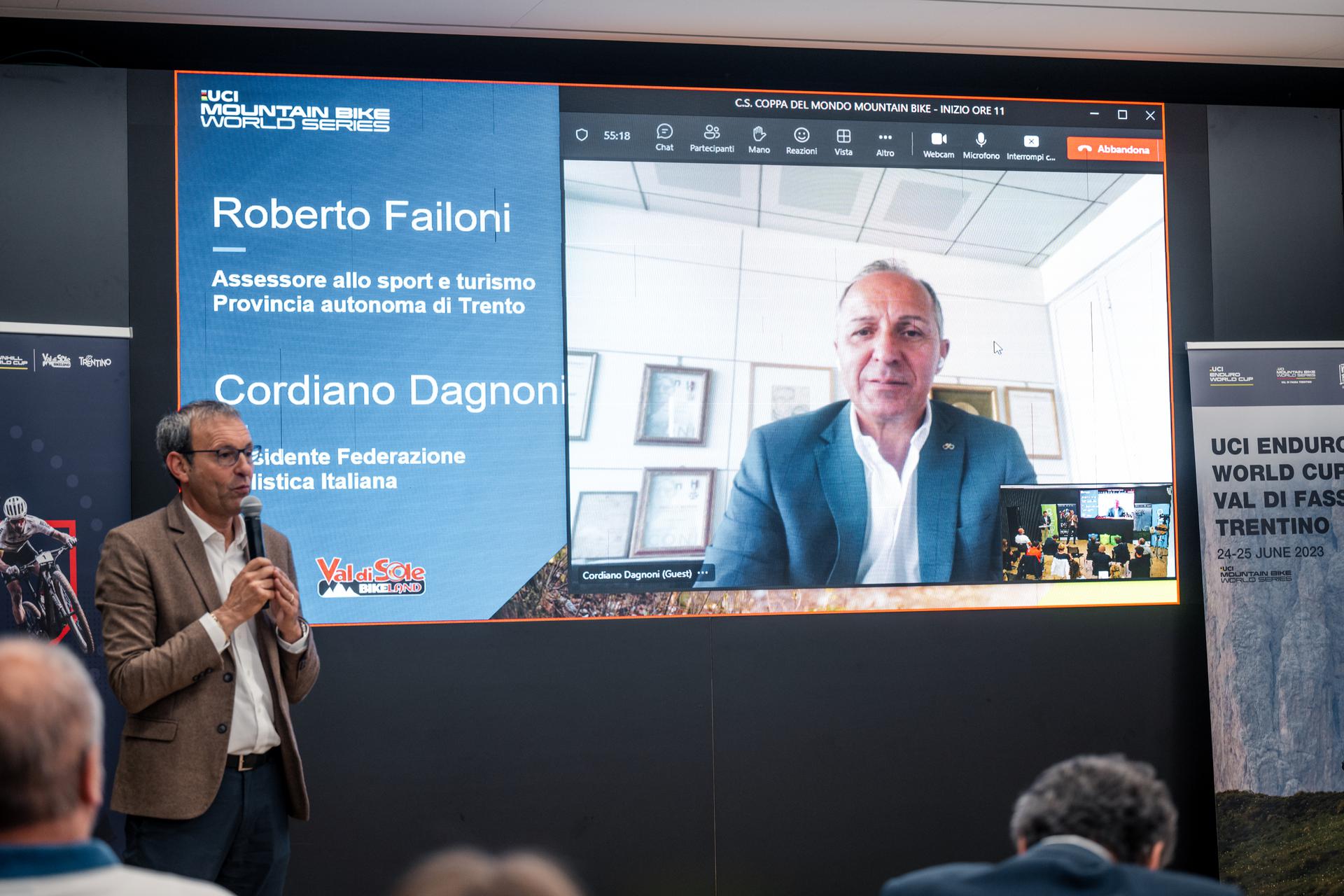 Hanno preso parte alla conferenza stampa, tra gli altri, l'Assessore al Turismo e allo Sport della Provincia Autonoma di Trento Roberto Failoni, l'Amministratore Delegato di Trentino Marketing Maurizio Rossini, il Sindaco di Commezzadura Ivan Tevini, la Presidente del CONI Trentino Paola Mora, il Presidente di APT Val di Sole e Grandi Eventi Val di Sole Luciano Rizzi e il Direttore Fabio Sacco, mentre si sono collegati in video conferenza il Presidente della Federazione Ciclistica Italiana Cordiano Dagnoni e il Chief Executive Officer di Eso Sport Chris Ball.