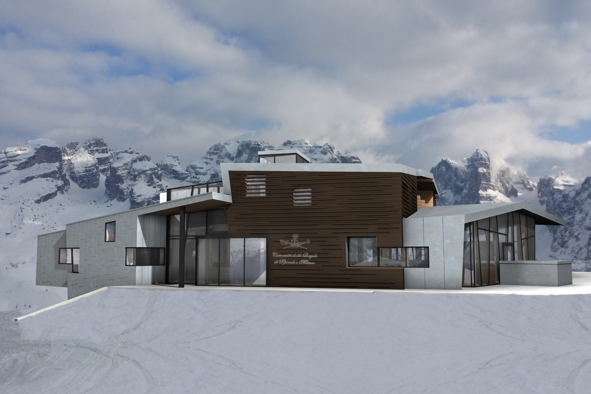 Ampie vetrate, pietra dolomia e legno con uno spettacolare panorama sulle Dolomiti di Brenta. È il nuovo Chalet Spinale - Fiat, uno spazio di vita e di benessere concepito in un'ottica di sostenibilità e rispetto per l'ambiente, che si candida ad essere un esempio di architettura sostenibile in grado di rispondere, con alti standard qualitativi, alle funzioni, alle esigenze e ai numeri del modello turistico attuale. Un edificio dove il linguaggio contemporaneo si confronta con il contesto e la spettacolarità dell'ambiente attraverso l'ampio utilizzo di tecniche costruttive e materiali improntati alla sostenibilità, al rispetto dell'ambiente e ad un basso consumo energetico. Forme, tagli e torsioni dei volumi sono ispirati alla geografia del luogo e rendono il nuovo edificio un elemento di connessione con la natura attorno. Progettato dagli architetti Giovanni Berti e Monica Fondriest di Artistudio disporrà di 7 suite con un piccolo centro wellness dedicato e una sala lettura, oltre al ristorante à la carte, al bar e al self service.