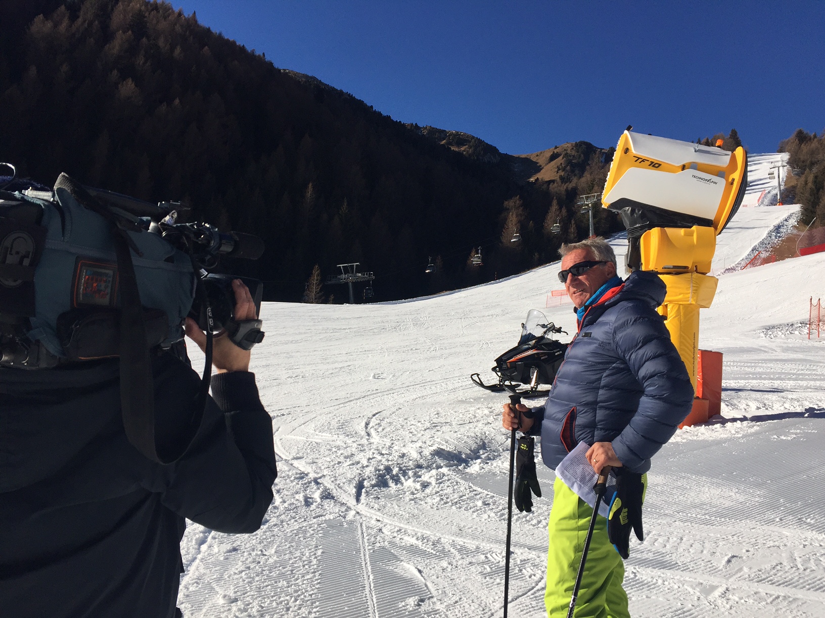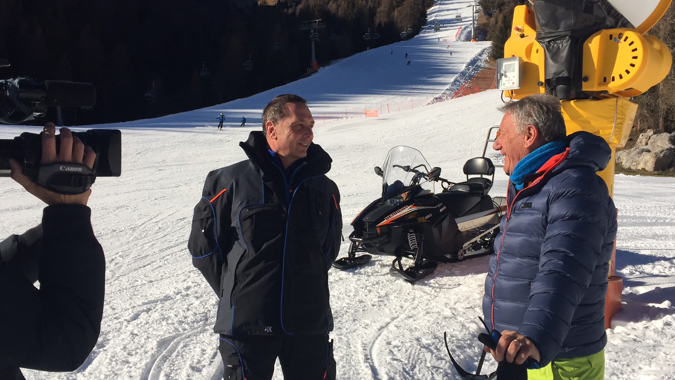 Trentino protagonista della programmazione di RaiUno, in questi giorni. Domani alle 9.40, infatti, nel corso di Unomattina andrà in onda un servizio di un paio di minuti girato in Val di Fiemme sul tema della neve e della tecnologia a essa applicata, con focus sui sistemi di innevamento programmato, sempre più efficienti ma sempre e comunque sostenibili. Durante le riprese Lino Zani – guida alpina e maestro di sci, consulente Rai per la montagna e membro a tutti gli effetti della squadra di conduttori di Linea Bianca – ha accompagnato la troupe di Unomattina sottolineando l’importanza dell’innevamento per avere piste ottime e al contempo l'ecosostenibilità dei sistemi utilizzati, dopodiché Fabrizio Bortolotti, capo servizio di Predazzo nello Ski Center Latemar, nello specifico è entrato nel merito spiegando da dove viene l'acqua e come funzionano i cannoni.