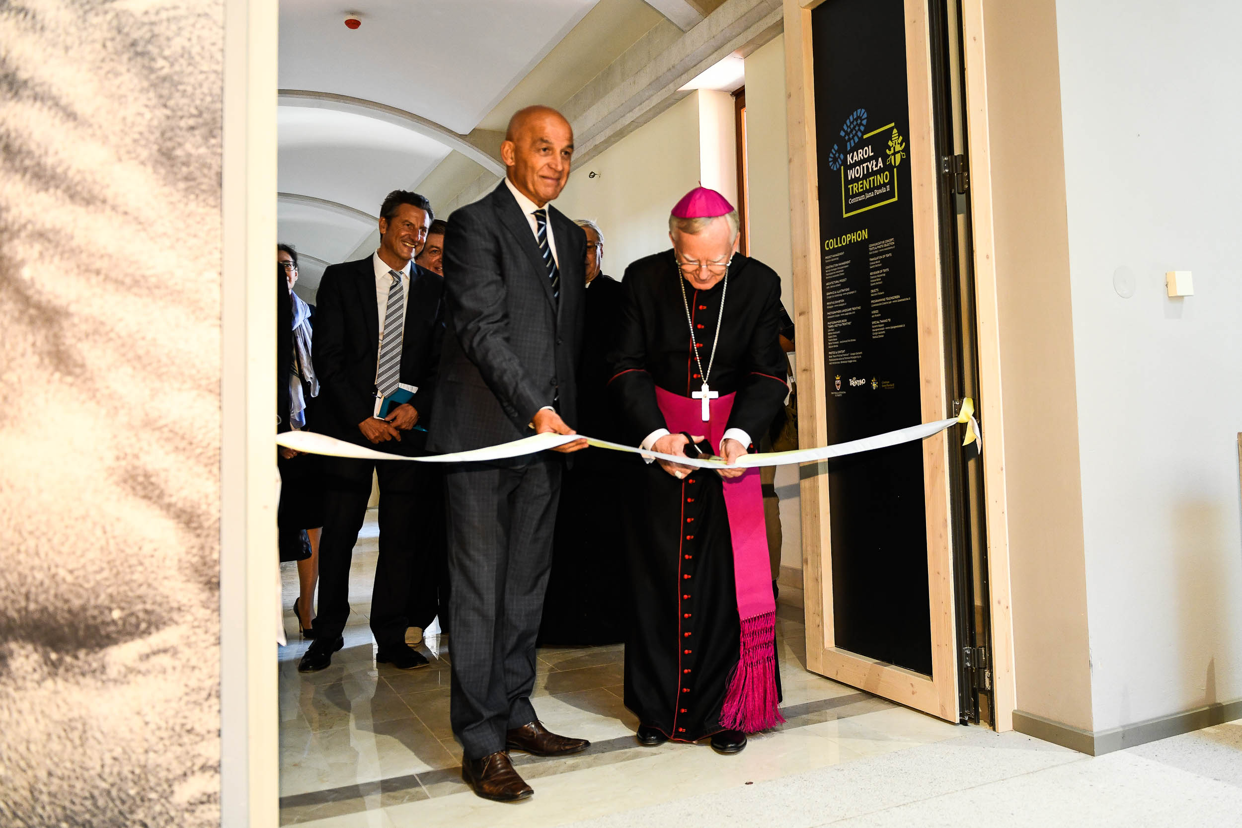 Erano presenti oltre all’Arcivescovo di Cracovia, il Presidente del Santuario Jan Kabziński, l’Assessore alla cultura della Provincia autonoma di Trento, l’Amministratore unico di Trentino Marketing Maurizio Rossini, il Direttore dell’Istituto Italiano di Cultura Ugo Ruffino, per la Fondazione Stava Clemente Deflorian e il Console onorario per la Polonia in Trentino Walter Cappelletto. Successivamente al taglio del nastro il Coro Cima Tosa si è nuovamente esibito per i presenti.