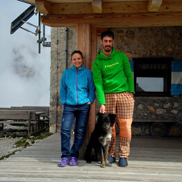Una giovane coppia sulla cima delle Dolomiti