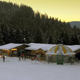 Met het hele gezin uit eten….direct aan de piste!