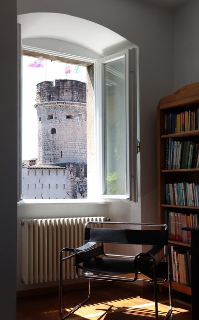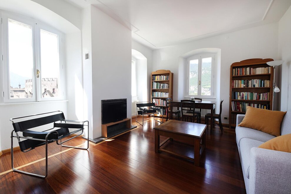 Het appartement is gelegen op een unieke locatie en in een historische context, in een klein dorp uit de 18e eeuw dat op de rots is gebouwd, vlakbij het Predara Park, dat vroeger een mijngebied was voor de stenen die hebben bijgedragen aan de bouw en inrichting van het historische centrum. Het Kasteel van Buonconsiglio ligt praktisch voor het raam, en hoewel het slechts 5 minuten lopen is van het hart van het historische centrum, geniet men van een ongeëvenaard panoramisch uitzicht op de stad en de omliggende bergen.