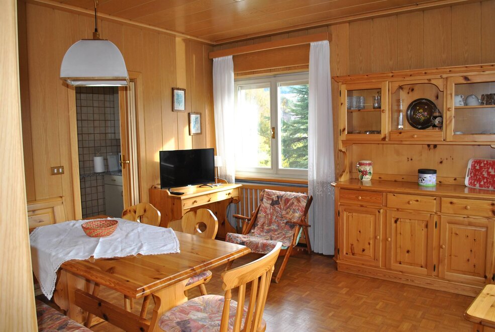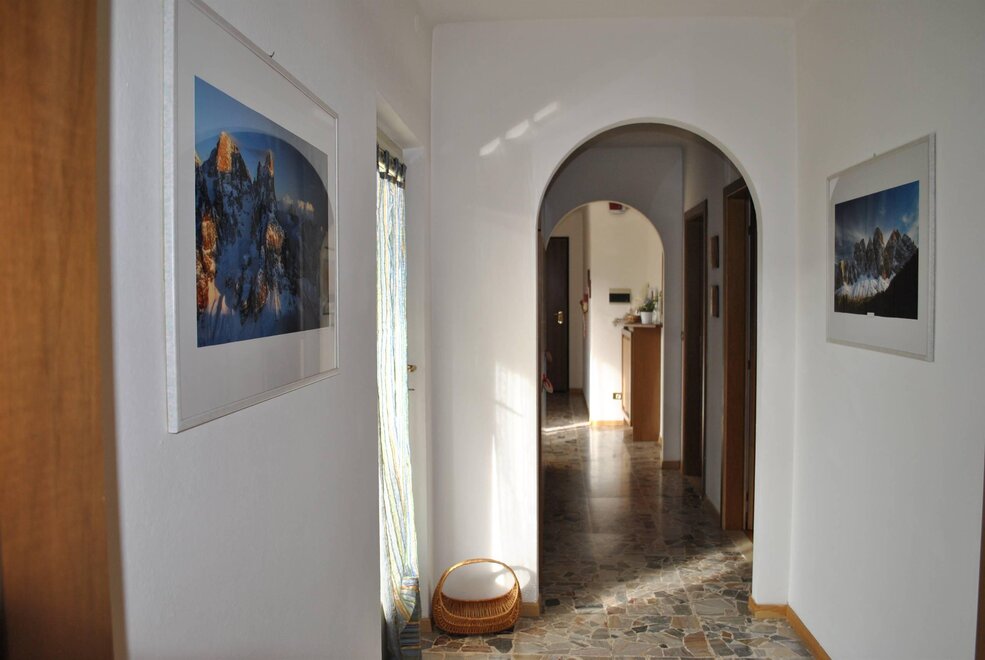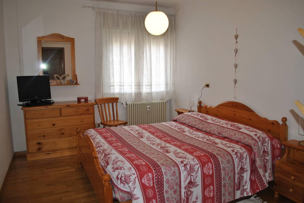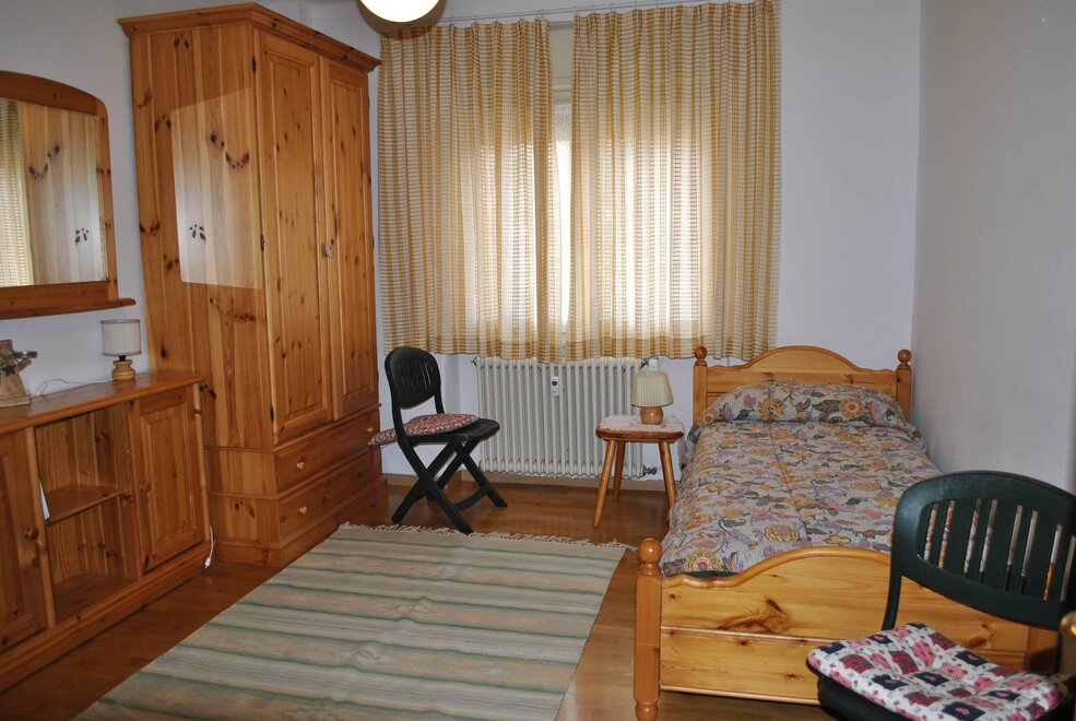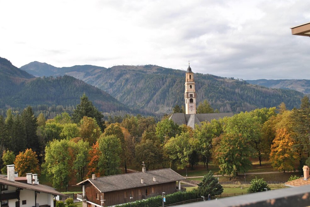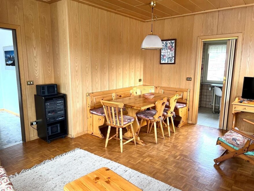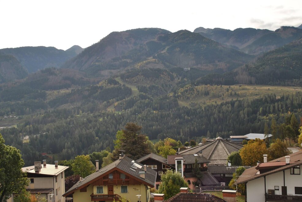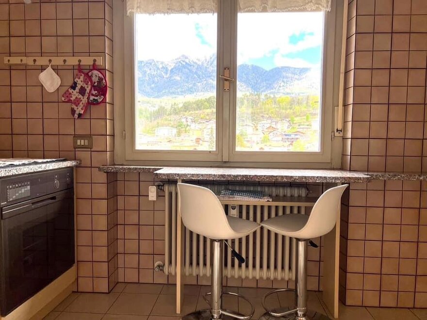 Vakantiewoning in Cavalese met een panoramisch en licht uitzicht, 4 slaapplaatsen, (tweepersoonskamer en twee eenpersoonskamers), grote woonkamer en aparte keuken, balkon met uitzicht op de Lagorai-bergketen, op enkele minuten lopen van het park van de Pieve en de kabelbaan van Cermis.