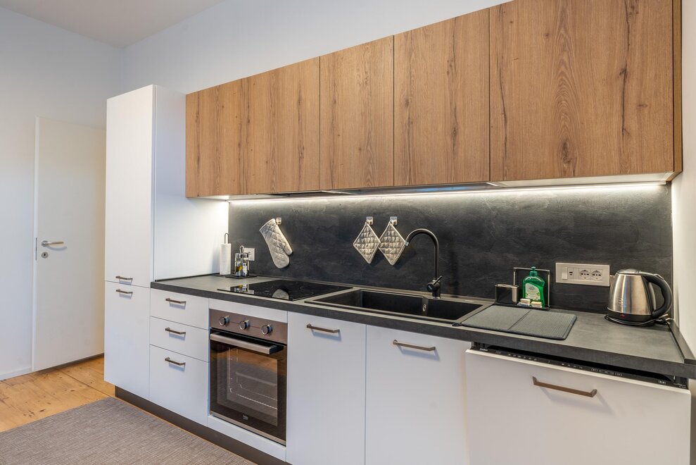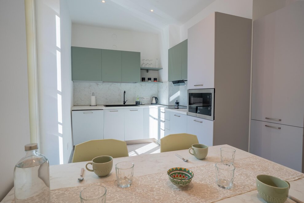 De compleet uitgeruste keuken omvat een kookplaat, koelkast, vaatwasser en keukengerei, perfect om je ook op vakantie thuis te voelen.De accommodatie biedt ook een wasmachine en droger, geluidsisolerende muren, een flatscreen-tv, ultrasnel glasvezelinternet en vanuit de ramen kun je genieten van een mooi uitzicht op de bergen, voor een verblijf dat in het teken staat van ontspanning.