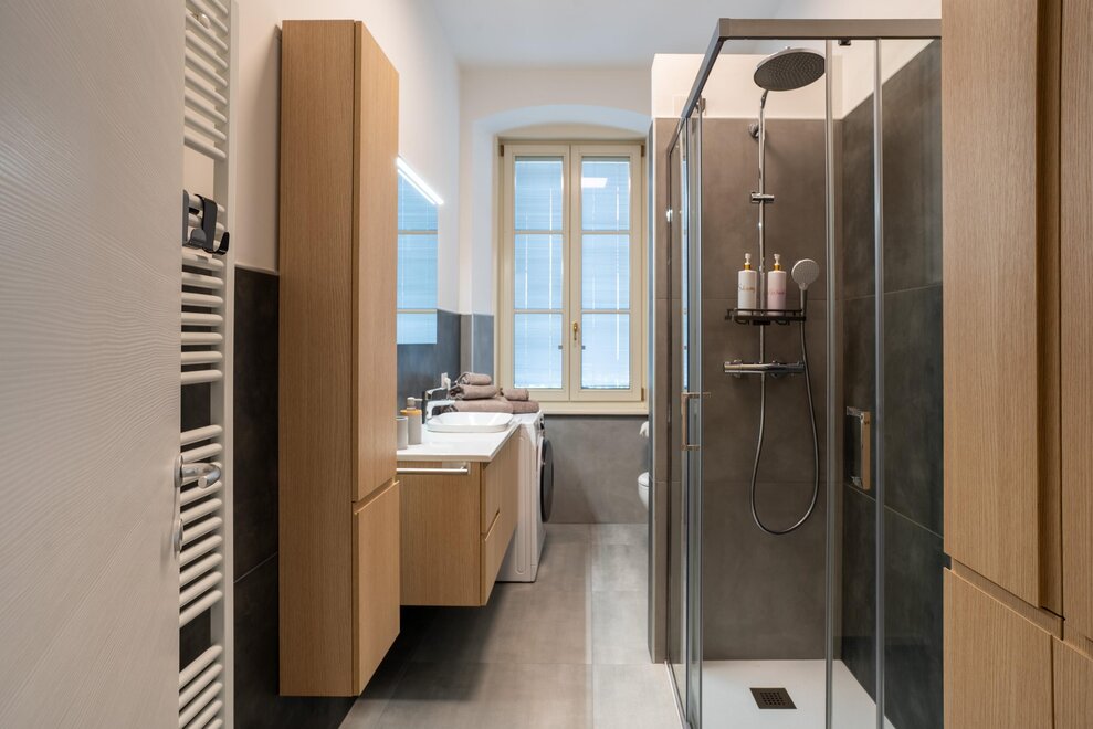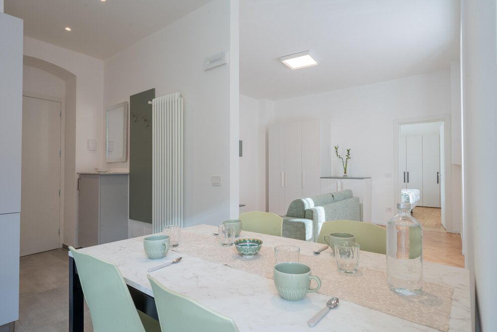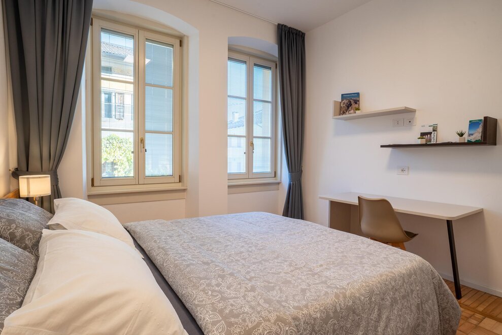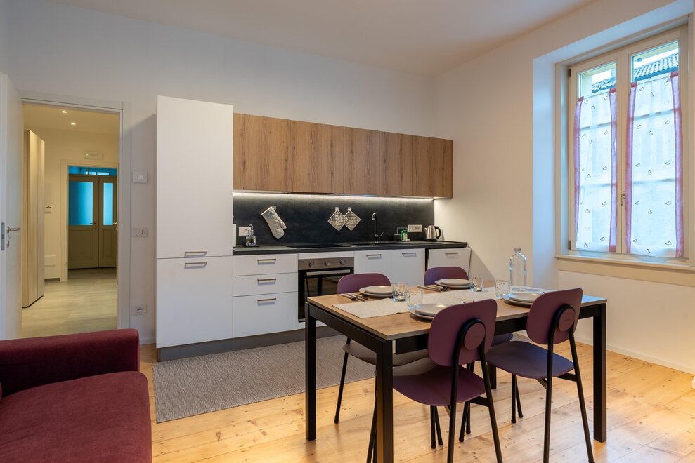 Dit ruime appartement, gelegen op de eerste verdieping, is ideaal voor gezinnen of groepen tot 8 personen (met de mogelijkheid om het appartement Brenta op dezelfde verdieping te gebruiken). Het beschikt over twee ruime tweepersoons slaapkamers en een moderne badkamer met douche.