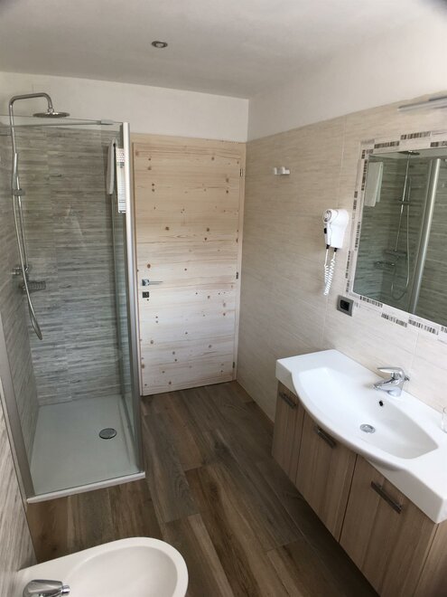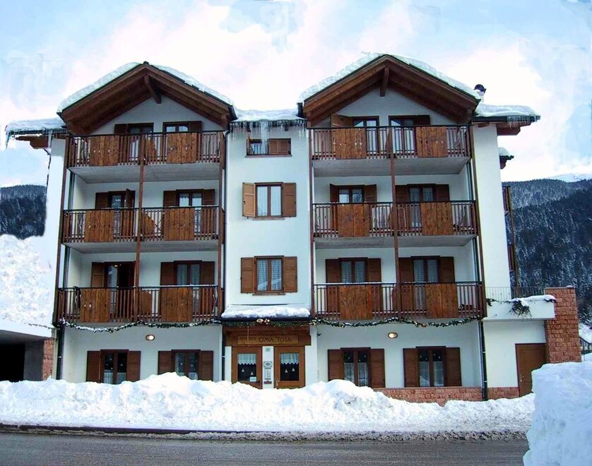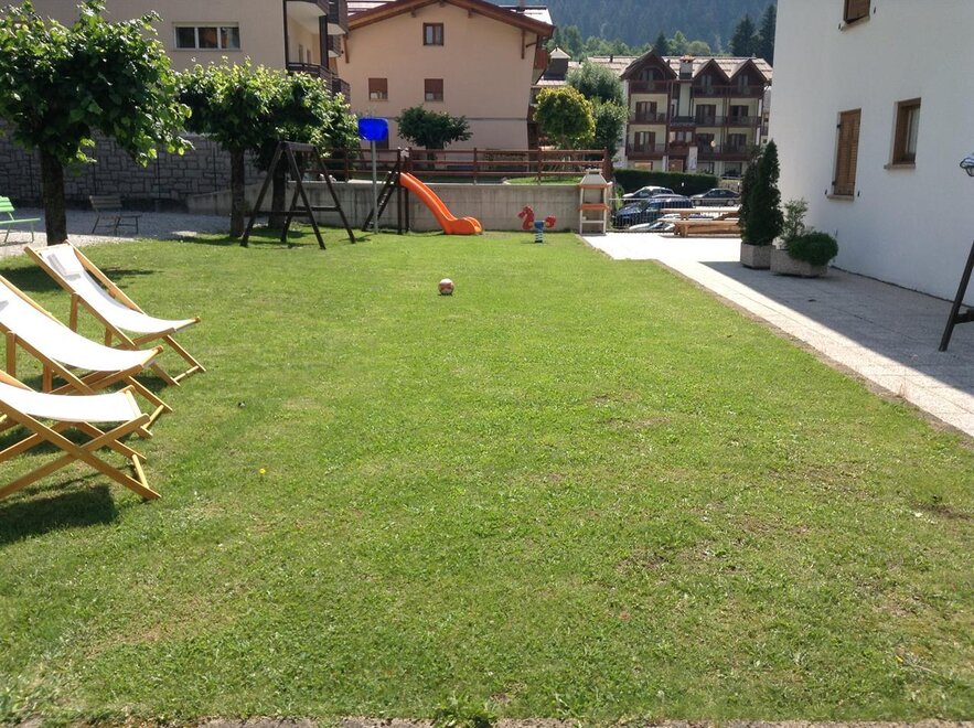 Toeristisch hotelresort dat rechtstreeks door de eigenaren wordt beheerd, beschikt over zeer ruime appartementen: vierkamerappartementen (3 slaapkamers + woonkamer + 2 badkamers) en driekamerappartementen (2 slaapkamers + woonkamer) allemaal met een groot balkon met uitzicht op de Brenta-Dolomieten, woonkamer met keukentje, afwasmachine, televisie, telefoon en Wi-Fi in alle kamers.