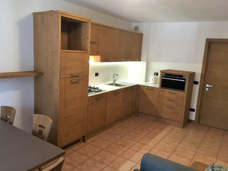 Ruim vierkamerappartement bestaande uit drie slaapkamers (ideaal voor 7/8 personen), woonkamer met kitchenette en twee badkamers met afwasmachine, magnetron, 2 televisies, kluis, haardroger. Panoramisch uitzicht op de Brenta Dolomieten vanaf het ruime zonnige balkon.