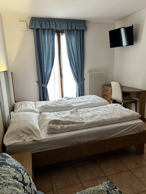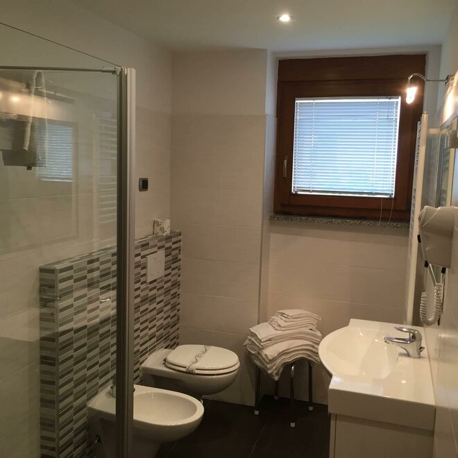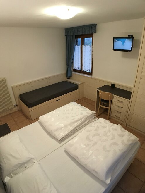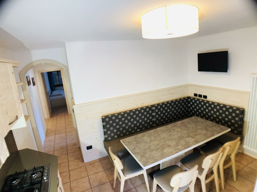 Ruime en lichte driekamerappartement bestaande uit twee tweepersoonskamers, woonkamer met kitchenette en een badkamer (mogelijkheid voor 6 bedden) compleet met vaatwasser, magnetron, 2 TV's,kluis, haardroger. Panoramisch uitzicht op de Brenta-dolomieten vanaf een ruim balkon.