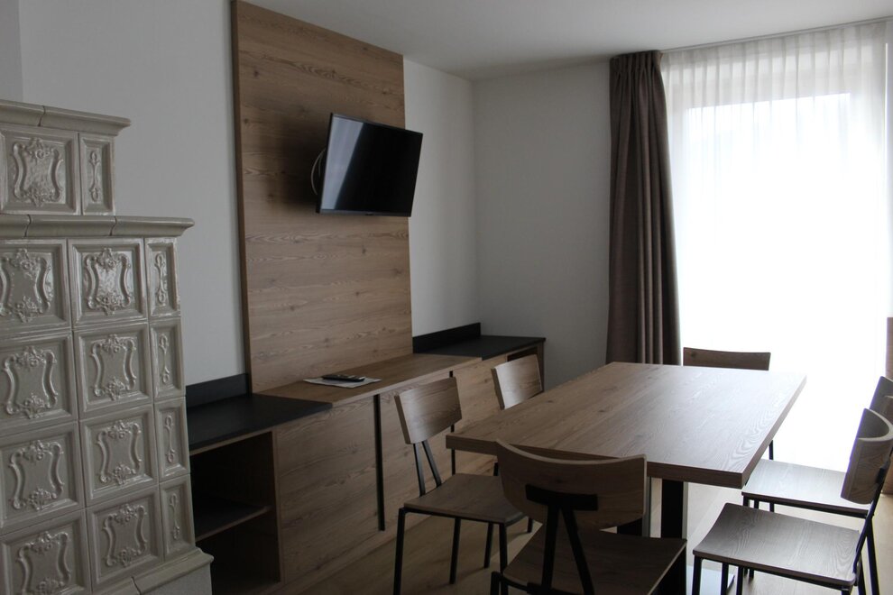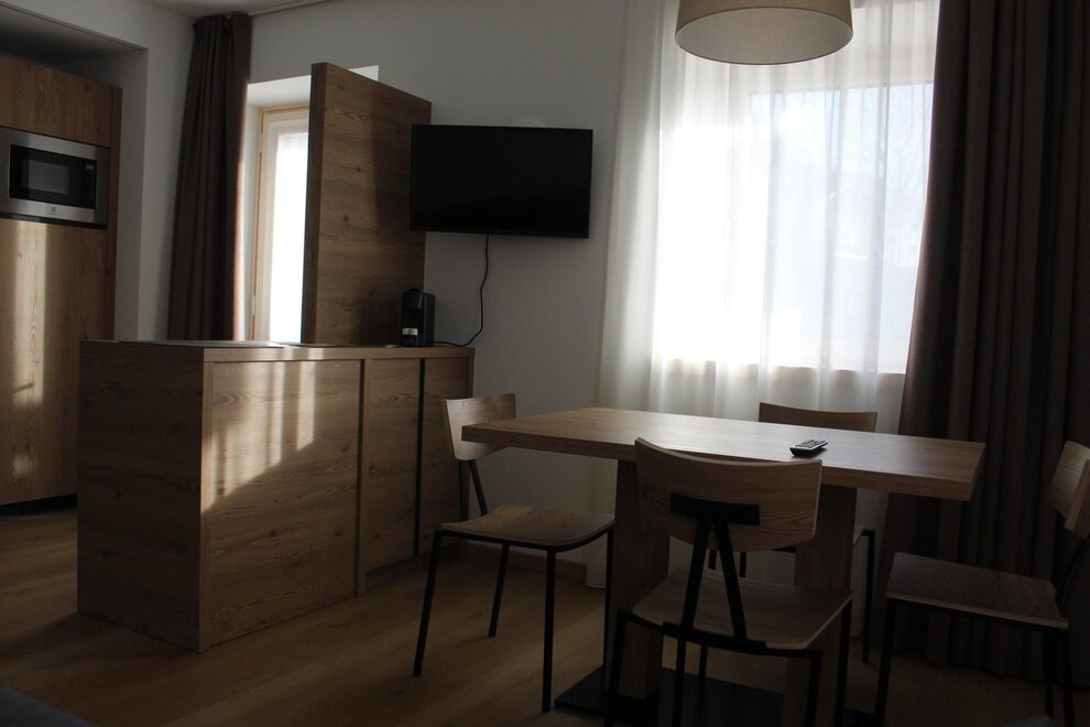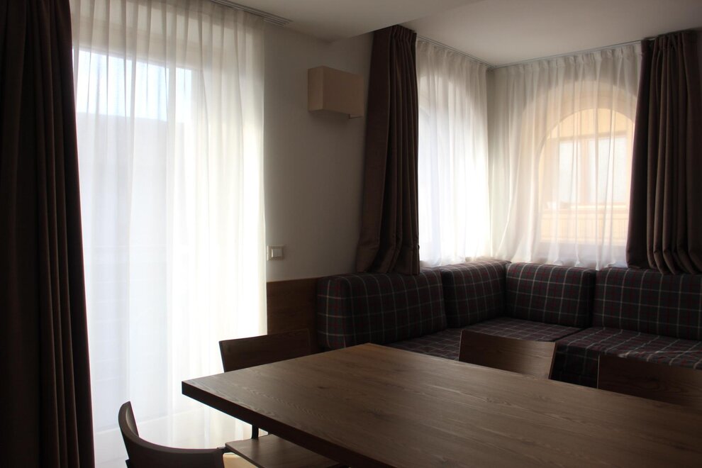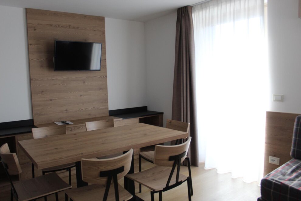 Bathroom linen is changed every three days. The kitchens are equipped with a dishwasher, microwave oven, induction hob and coffee pod machine. Free private parking, wi fi throughout the entire hotel, garage for bicycles and motorbikes 200 meters away and the Dolomiti Guest Card For a fee, use of the laundry room (washing machine and dryer) under our control