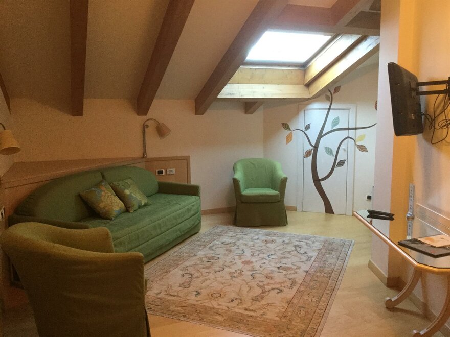 De Junior Suite is een kamer van 34 m² met dubbele of tweepersoonsbedden. Sommige kamers hebben een zitje en sommige hebben een klein balkon (één zelfs met een zeer groot terras) en zijn zeer licht. De inrichting is modern met esdoornhout en de vloer is bedekt met hypoallergene Schotse wolvilt in het rood of blauw of met hout. Onze kamers zijn voorzien van: twee satelliet-tv's van 28”; gratis en onbeperkt WiFi in het hele hotel - u vindt het wachtwoord in uw welkomstkit; minibar; airconditioning (op aanvraag, alleen in sommige kamers); föhn; kluis. Het beschikt ook over een ruime inloopkast. De badkamer is zeer ruim, met grote spiegeloppervlakken en is ook beschikbaar met een badkuip.