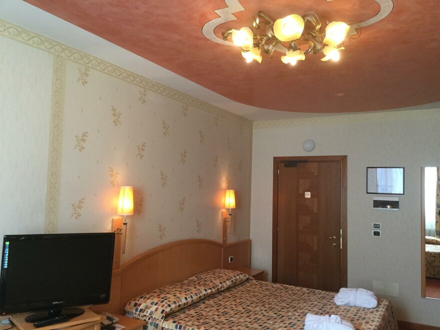 Ruime kamer. Televisie 28', minibar, free WI FI, telefoon. Airconditioning op aanvraag. Tweepersoonsbed of aparte bedden. Slaapbank toegevoegd. Diner: buffet + menukeuze