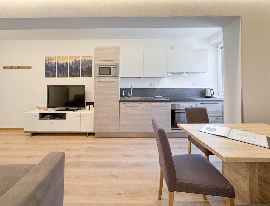 Het bestaat uit een slaapkamer met uitzicht op de bergen, een woonkamer met een comfortabele tweepersoons slaapbank (16 cm matras!), badkamer met glazen douche, privé kelder.