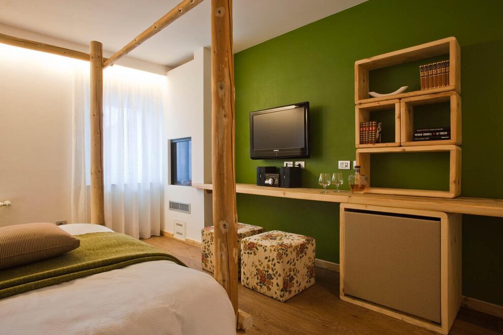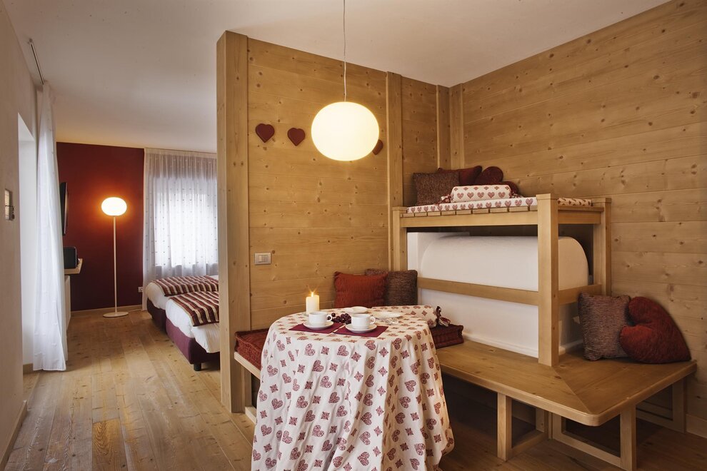 De 12 kamers, geïnspireerd op evenveel steden van de wereld, brengen u met uw gedachten naar verre plaatsen en sferen, terwijl u toch in het charmante en typische bergdorp Campitello di Fassa blijft.