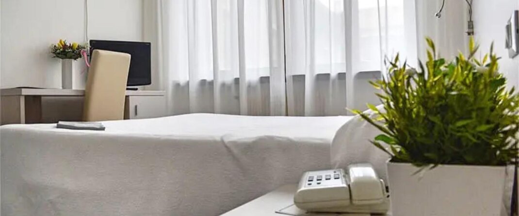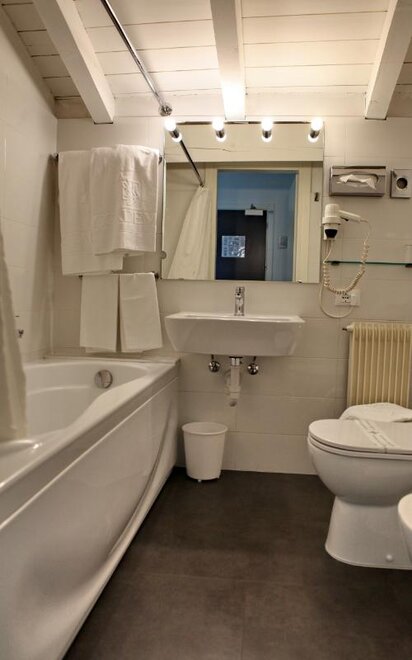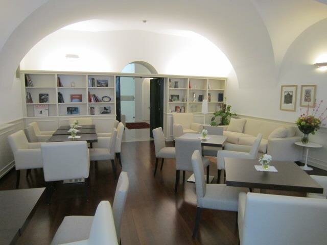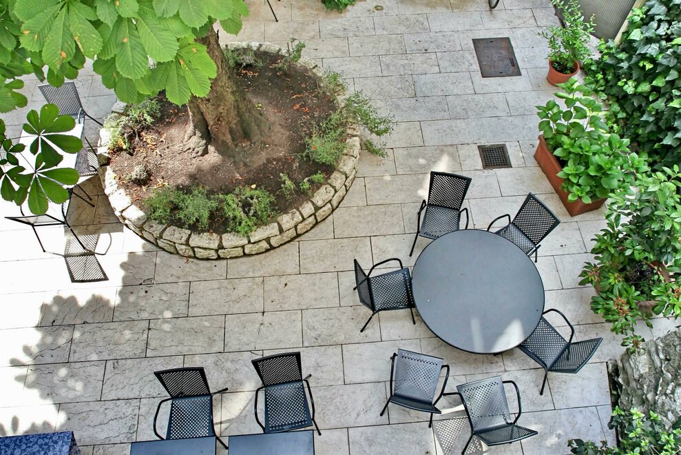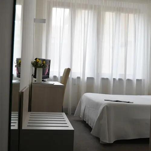 Wyłożony parkietem pokój jednoosobowy z widokiem na cichy wewnętrzny dziedziniec. Zamiast pojedynczego łóżka, pokoje wyposażone są w łóżko o szerokości 120 cm dla większego komfortu w nocy.