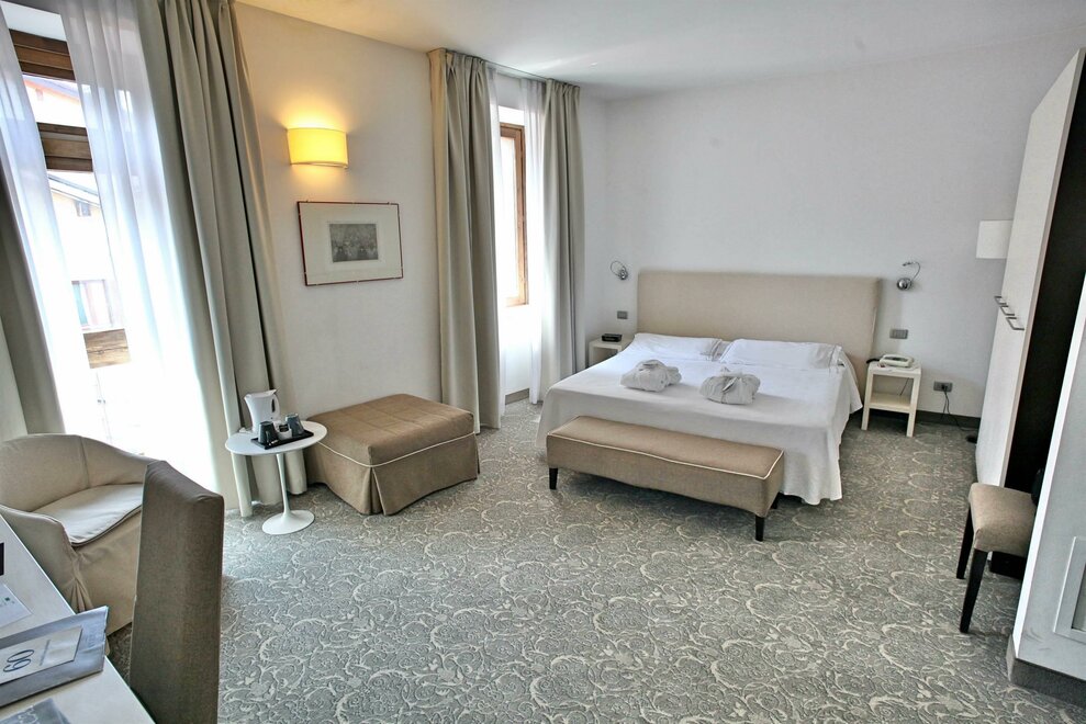 Apartament typu junior suite oferuje przestronną i wyrafinowaną atmosferę z częścią dzienną, w której można cieszyć się chwilami relaksu. Rozmiar pozwala również na dodanie dodatkowego łóżeczka dziecięcego