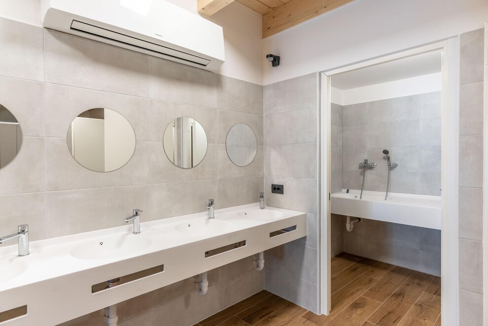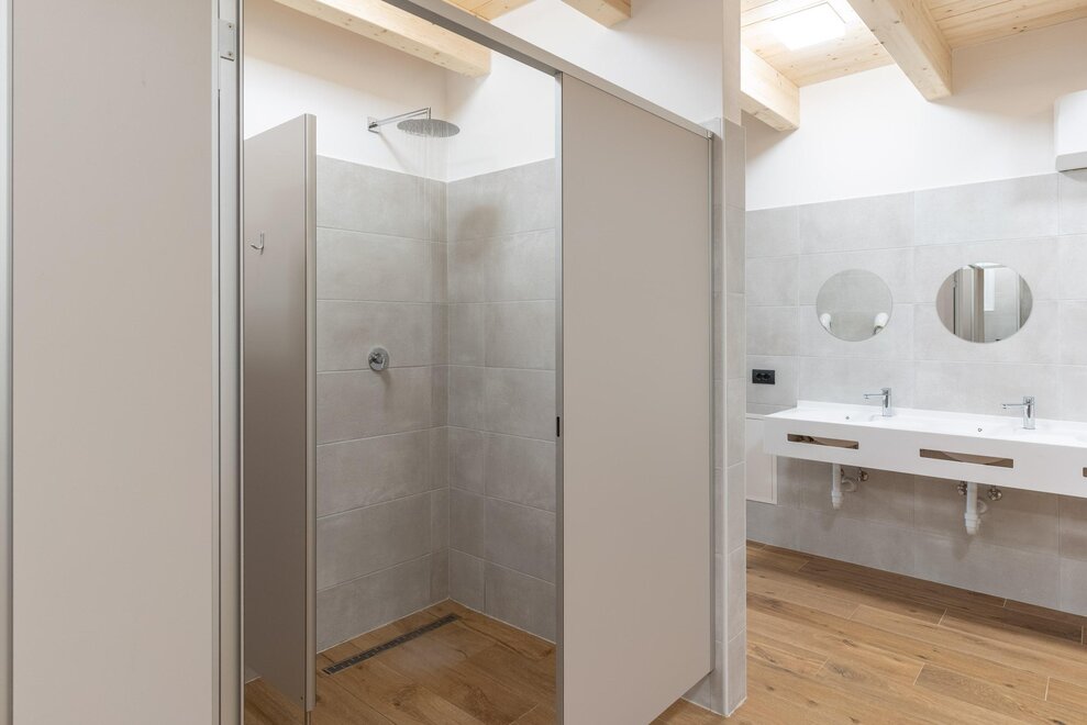 - jednoosobowe kabiny z ciepłą woda
