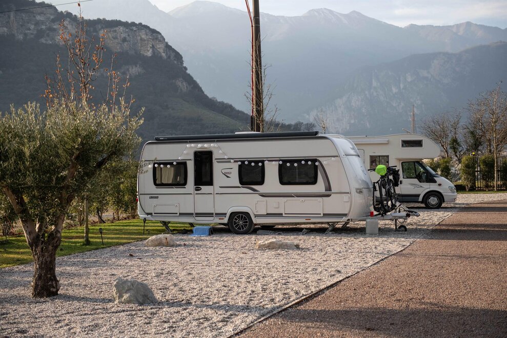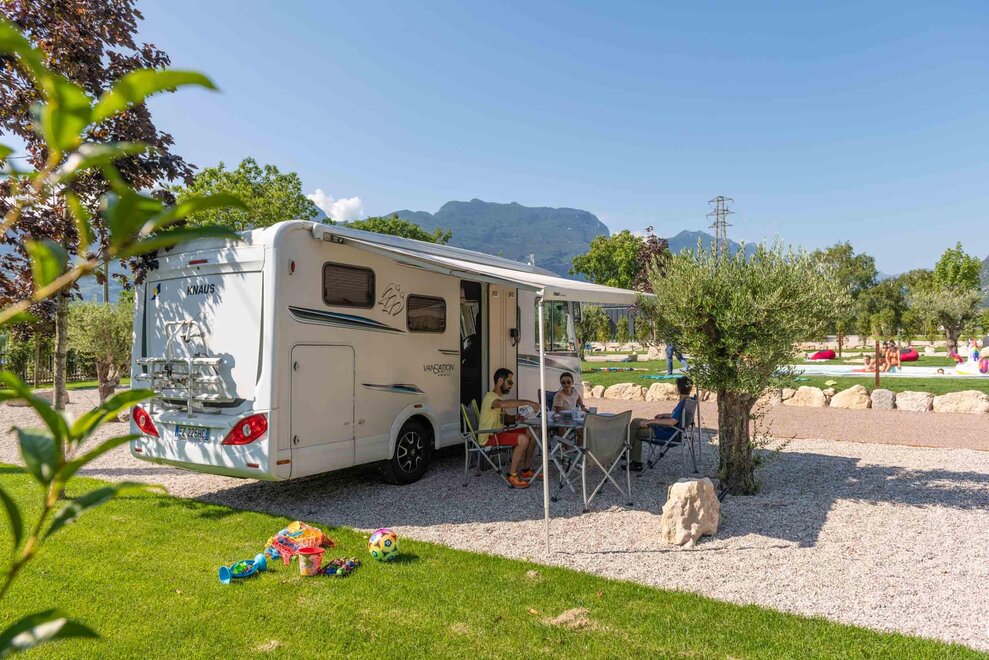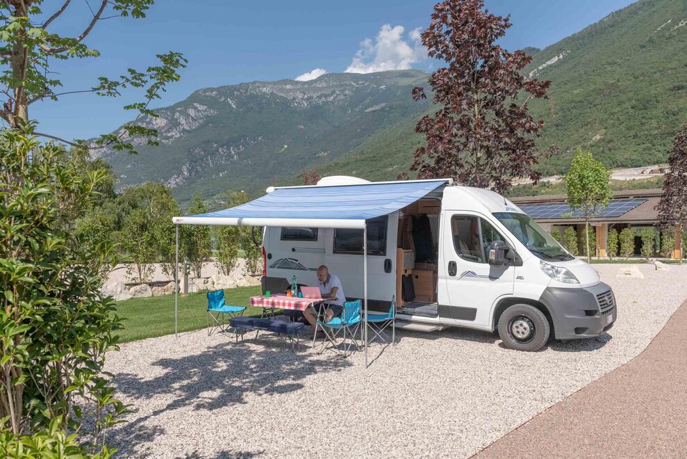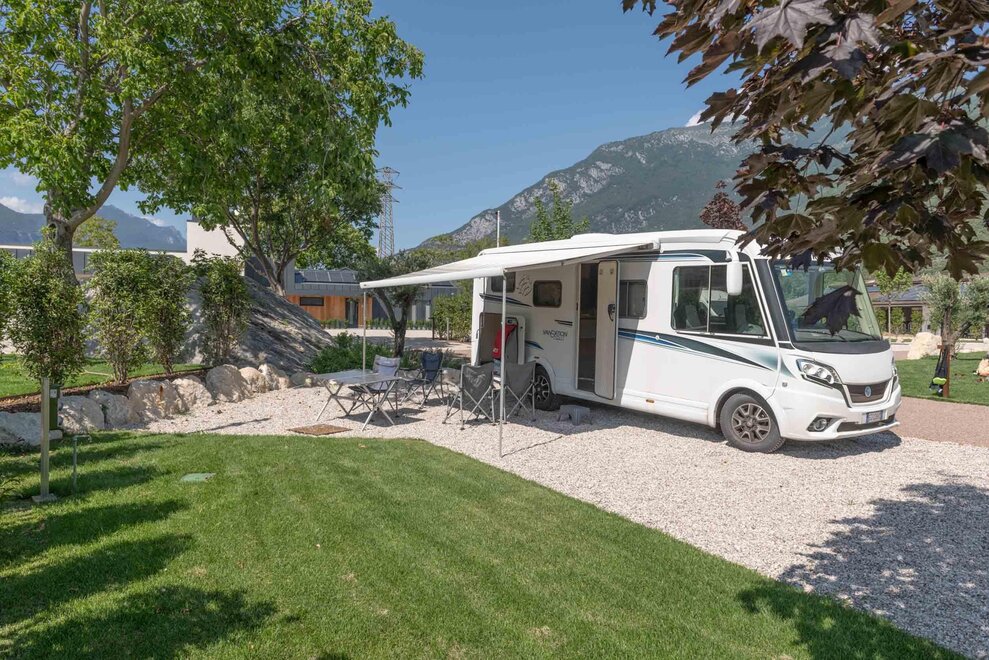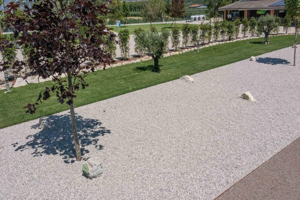 - Strefa komfortowego żwiru o minimalnej długości 8,5 m, na której możesz zaparkować swój pojazd (pojazdy do 8-8,5 m, do 9 metrów w stanowiskach Deluxe Prunus, Aromatic, Green Corner, Green Palon). Będziesz mieć wystarczająco miejsca, aby rozłożyć markizę, mocując ją do specjalnie przygotowanych haków w każdym stanowisku, pozostawiając sobie dużo przestrzeni po bokach oraz na trawie.