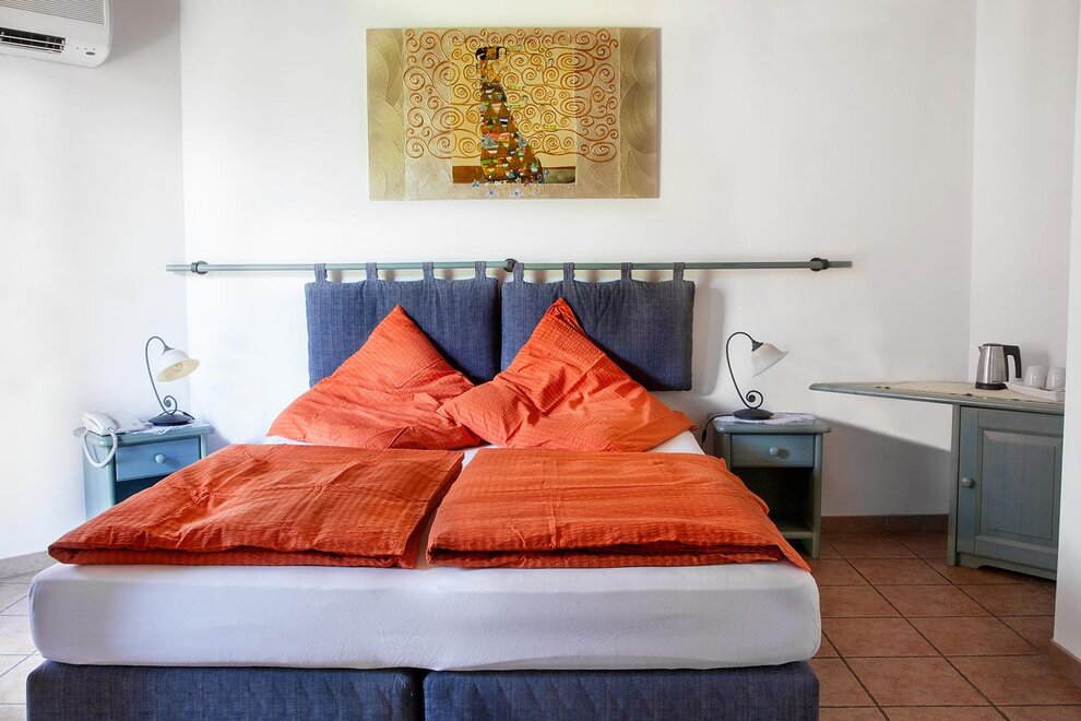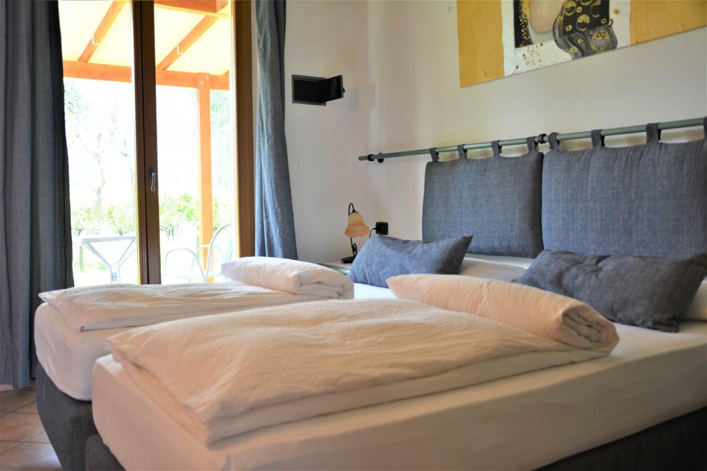 Komfortowy pokój dwuosobowy z możliwością dodania trzeciego miejsca do spania, składający się z łazienki z prysznicem, sat/tv, klimatyzacji lub ogrzewania, małej lodówki, sejfu, suszarki, bezpośrednim dostępem do ogrodu. Z pokoi można podziwiać wspaniały widok na góry otaczające nasz cudowny region.