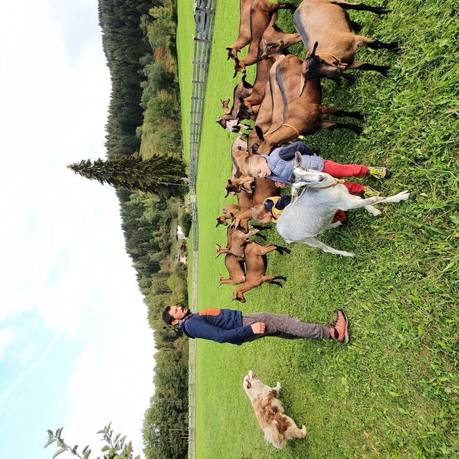 Przed nowym obiektem noclegowym znajduje się rodzinna firma rolna, która zajmuje się hodowlą kóz i owiec. Od pewnego czasu również produkcją naturalnej linii kosmetyków na bazie mleka koziego, którą znajdziecie także w pokoju.