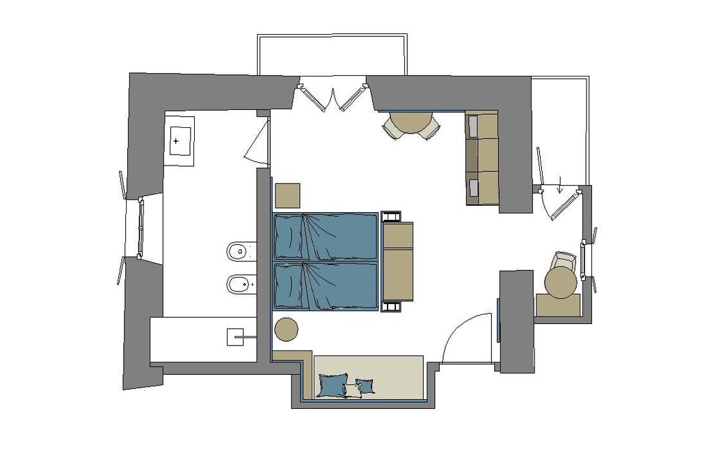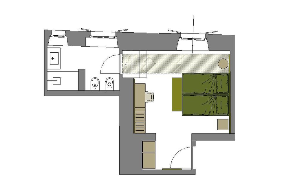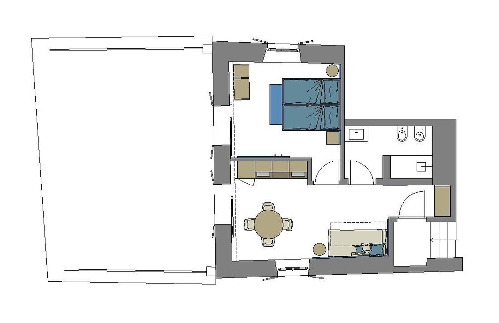 Obie sypialnie wychodzą na dużą taras, prawdziwy skarb mieszkania: przestrzeń na świeżym powietrzu, gdzie można cieszyć się ładną pogodą, jeść śniadanie z widokiem, organizować kolacje pod gwiazdami lub po prostu się zrelaksować.Wyposażenie pokoju