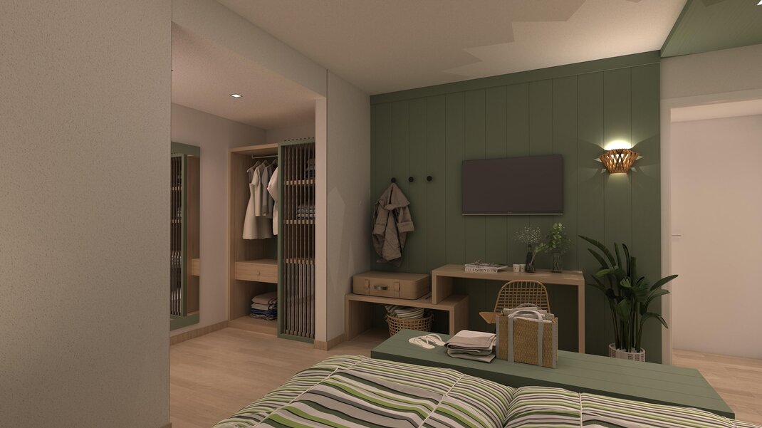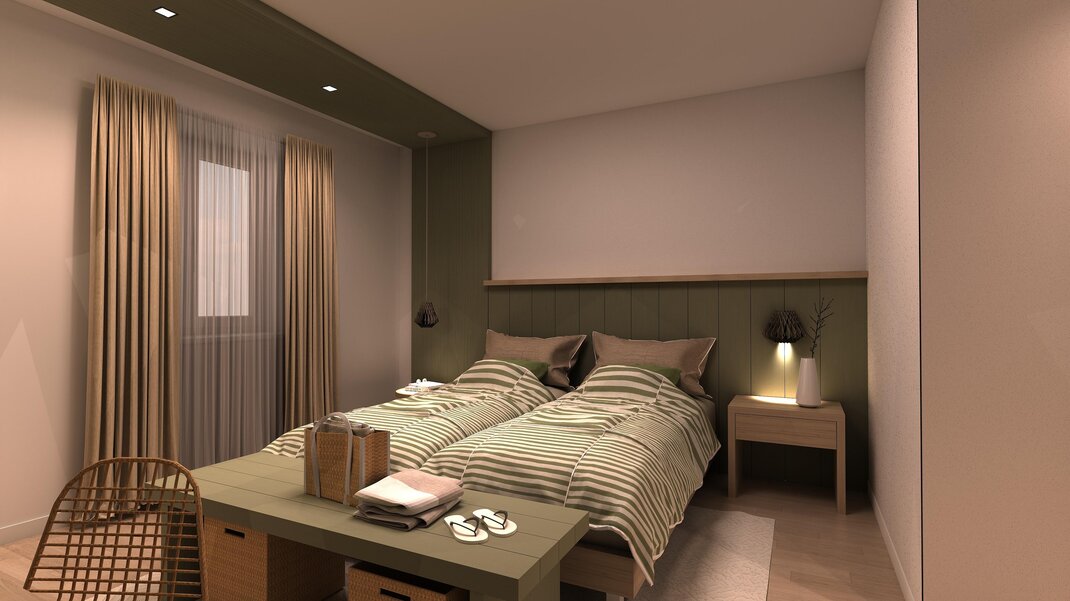 Nasza nowa dwuosobowa sypialnia znajduje się w głównym budynku kempingu, otoczona zielenią i spokojem natury. Jasna i przytulna, zaprojektowana z myślą o maksymalnym komforcie podczas Twojego pobytu.