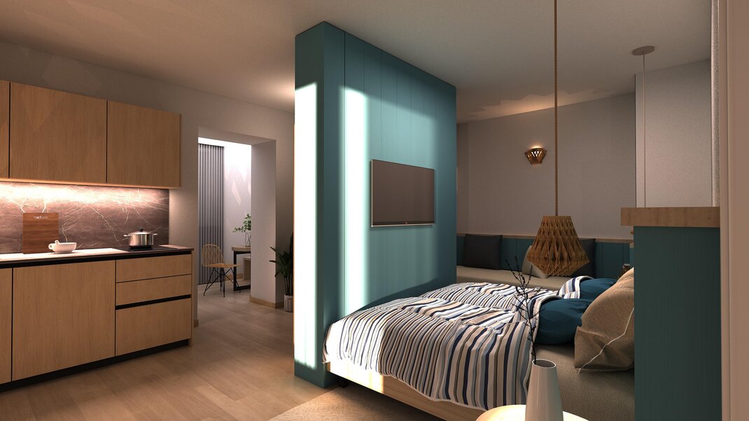 Wielkość 31 m² Obłożenie 1 - 3 Dorośli , 0 - 2 dzieci Pokoje 1 Sypialnie 1 Szczegóły pokoju