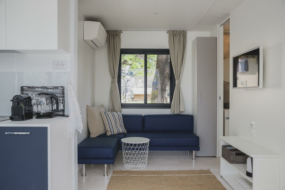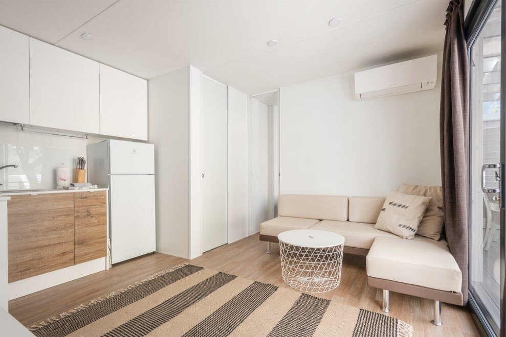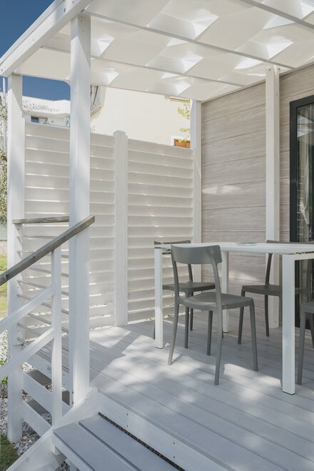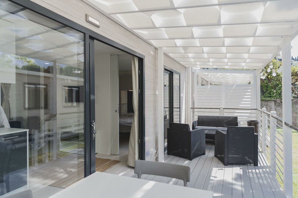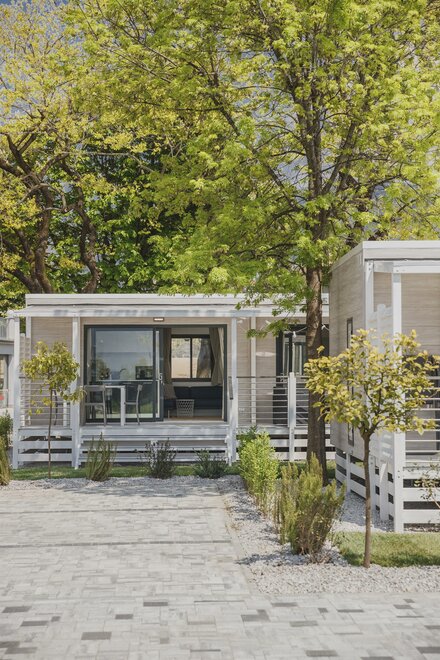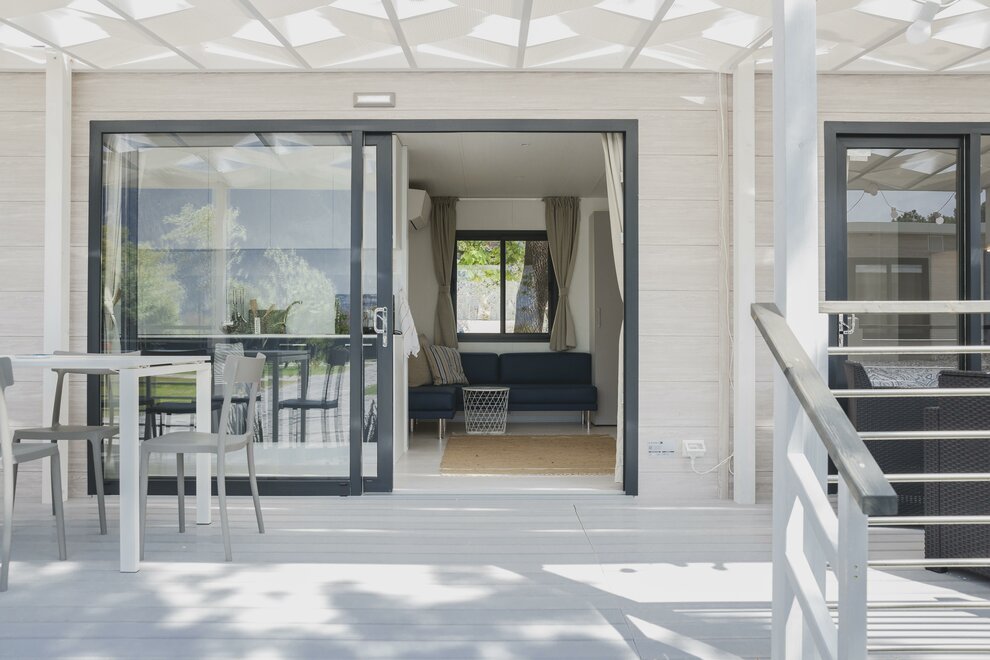 Wszystkie domy mobilne mają umeblowany taras; ceny obejmują osoby (maks. 4 osoby), zużycie (woda, prąd, klimatyzacja), zestaw pościeli i ręczników, parking oraz korzystanie ze wszystkich usług kempingu. Sprzątanie końcowe nie jest wliczone w cenę.