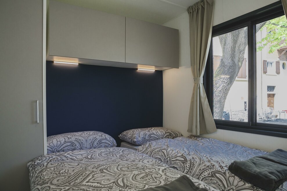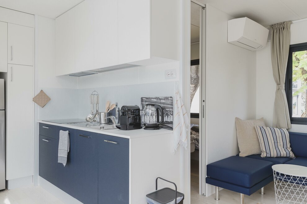 Nasze nowe domy mobilne LARGE, otoczone zielenią i położone zaledwie kilka metrów od jeziora, wyposażone są w dwie sypialnie (pościel i poduszki w zestawie), prywatną łazienkę z prysznicem, w pełni wyposażony aneks kuchenny, klimatyzację, telewizję satelitarną, łącze wifi, parking obok zakwaterowania oraz wszystkie udogodnienia, aby zapewnić niezapomniany wypoczynek, spełniający potrzeby wszystkich, dużych i małych, otoczonych naturą, w atmosferze pełnego relaksu!