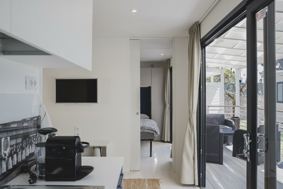 Odpowiednie dla par lub małych rodzin, studio zapewnia autonomię z zaletą dostępu do wszystkich usług kempingu. Idealny wybór dla tych, którzy chcą w praktyczny, komfortowy sposób cieszyć się jeziorem i być w kontakcie z naturą.