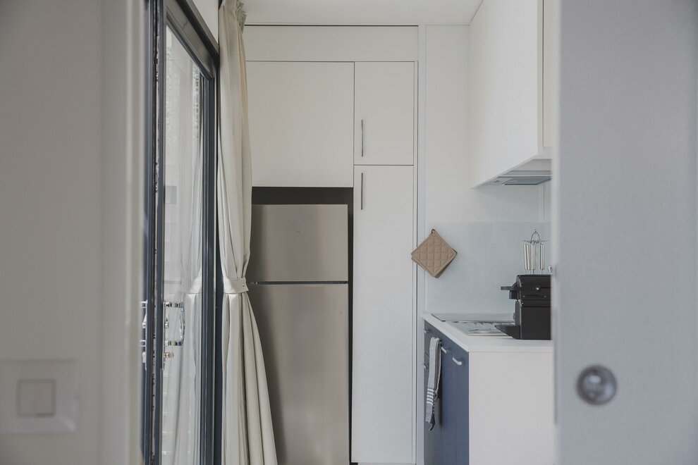 Środowisko jest jasne i starannie urządzone, aneks kuchenny jest wyposażony w płytę grzewczą, lodówkę, mikrofalówkę, czajnik, ekspres do kawy oraz naczynia.