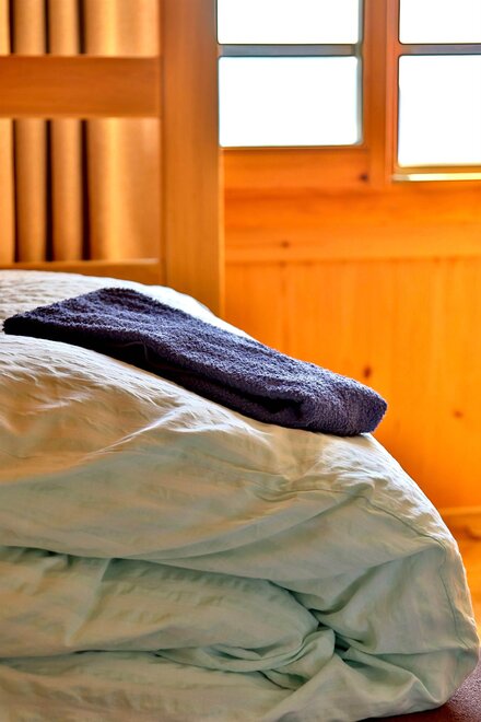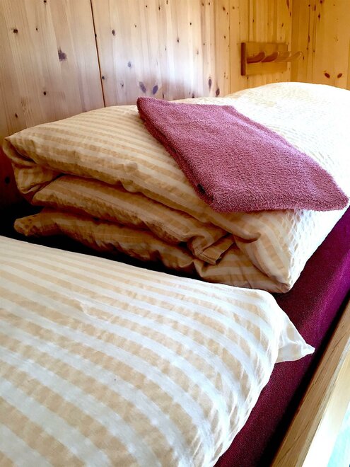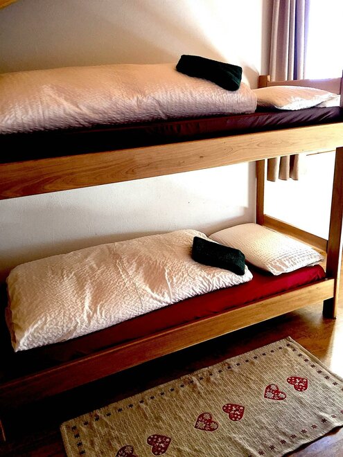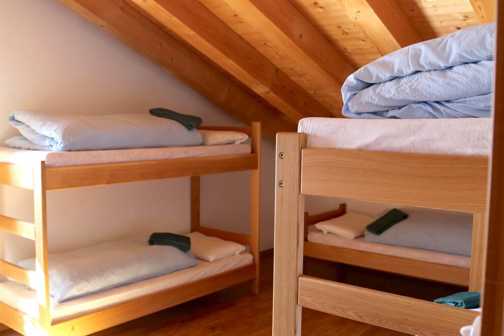 Pokój jest wyposażony w dwa łóżka piętrowe oraz jedno pojedyncze; zapewniamy kołdry z puchu gęsiego wraz z całym pościelą - prześcieradłami, poszewkami na kołdry - a także poduszki z poszewkami i ręczniki do twarzy. Wliczone jest wyżywienie półpensjonatowe.