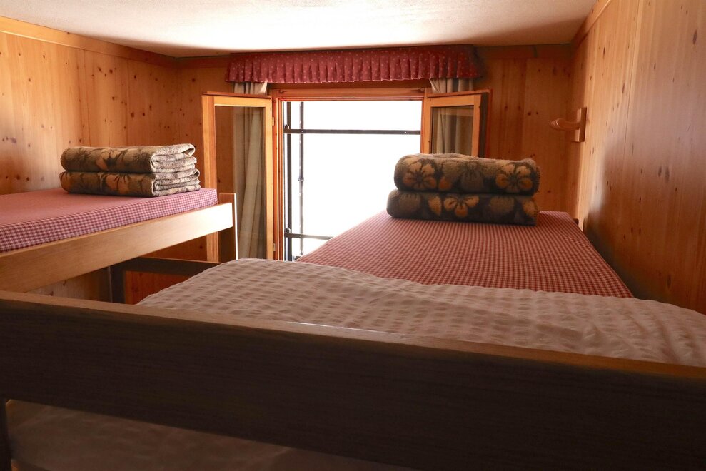 Pokój jest wyposażony w łóżko piętrowe; zapewnione są kołdry puchowe oraz pościel - prześcieradła na materac, poszwy na kołdry - a także poduszki z poszewkami i ręczniki do twarzy. Wliczone jest wyżywienie półpensjonatowe.