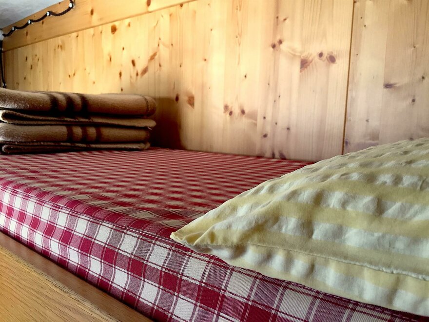 Pokój wyposażony jest w dwa piętrowe łóżka; zapewniamy wełniane koce oraz poduszki z poszewkami. Obowiązek korzystania z własnego śpiwora. Wliczone jest zakwaterowanie z usługą półpensjonatu.