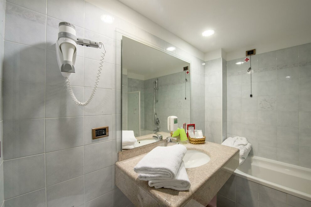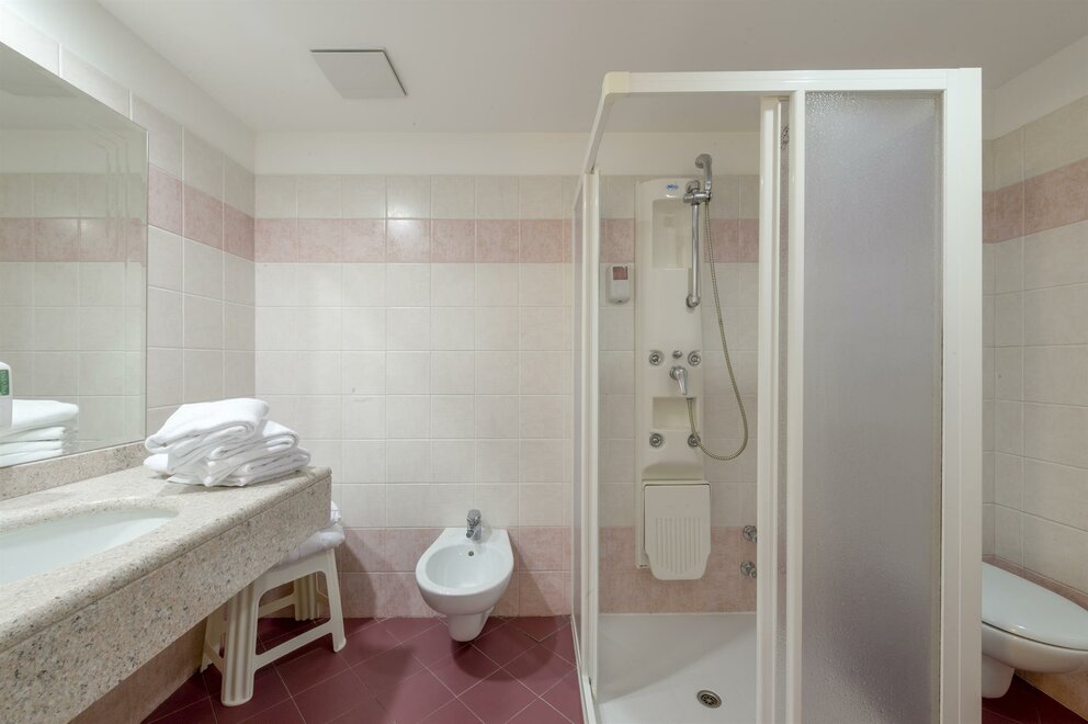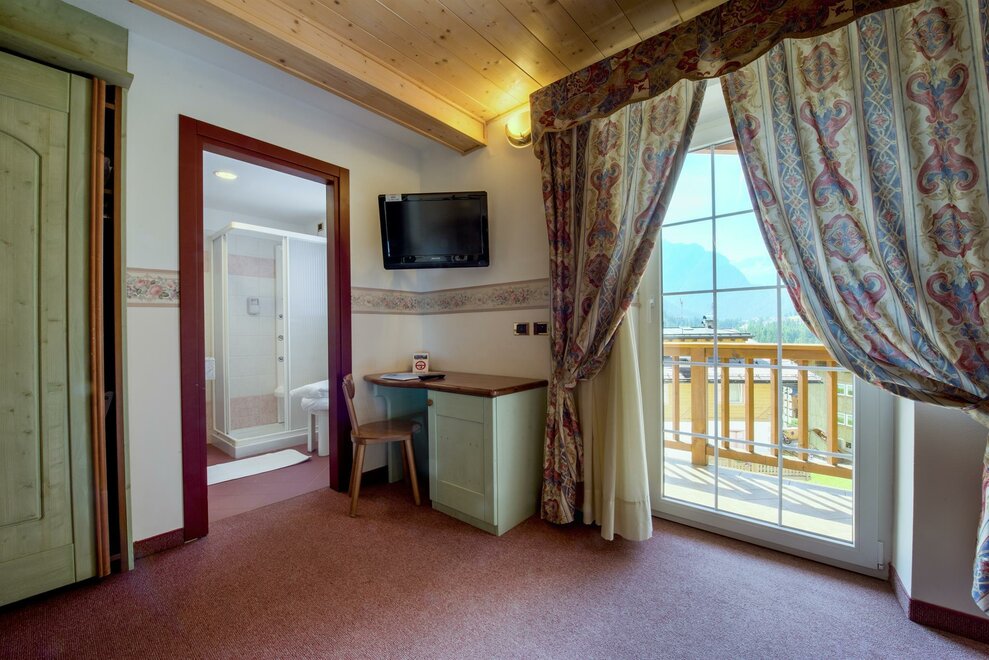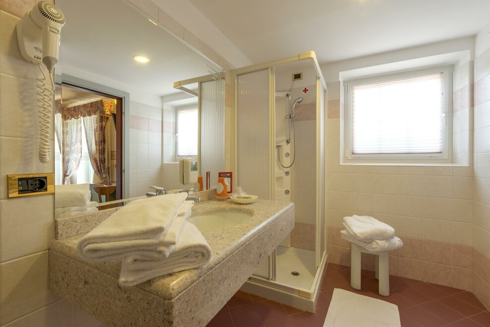 Room suitable for two people plus a third bed (no folding bed); double plus one or three separate beds. Served by a full bathroom, one entrance, a TV. Almost all of our rooms have blacone and all have lift access.