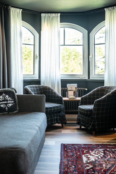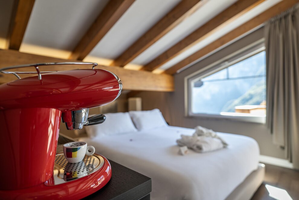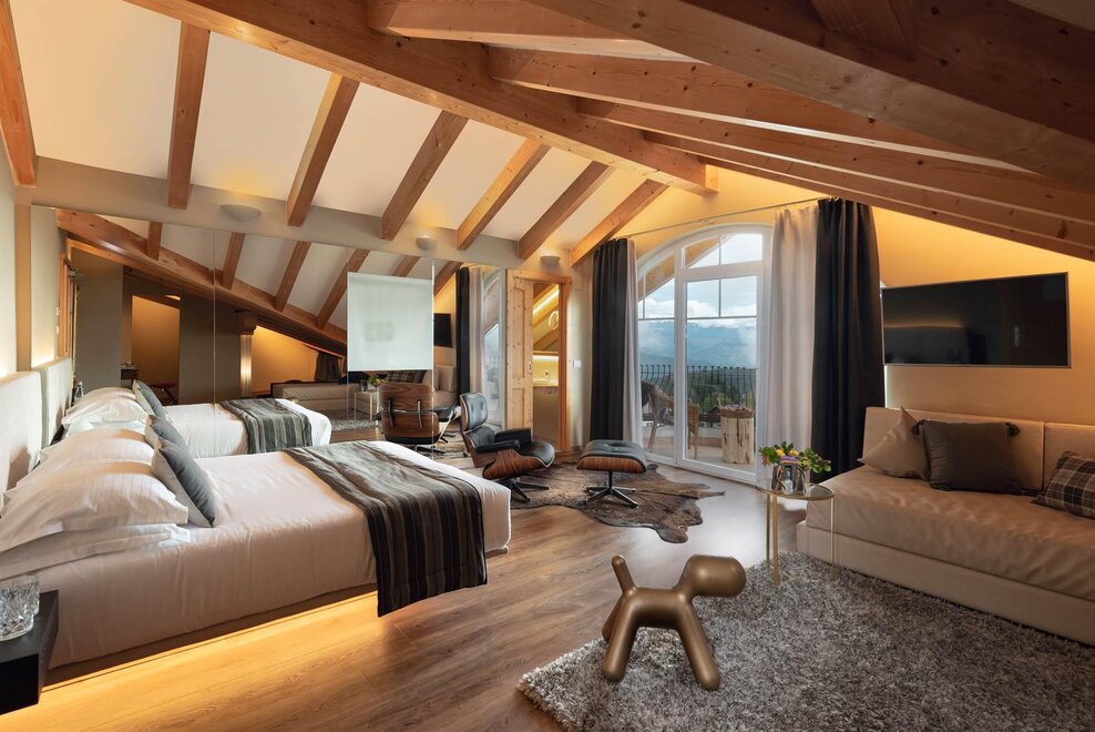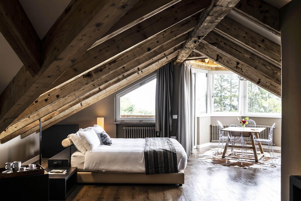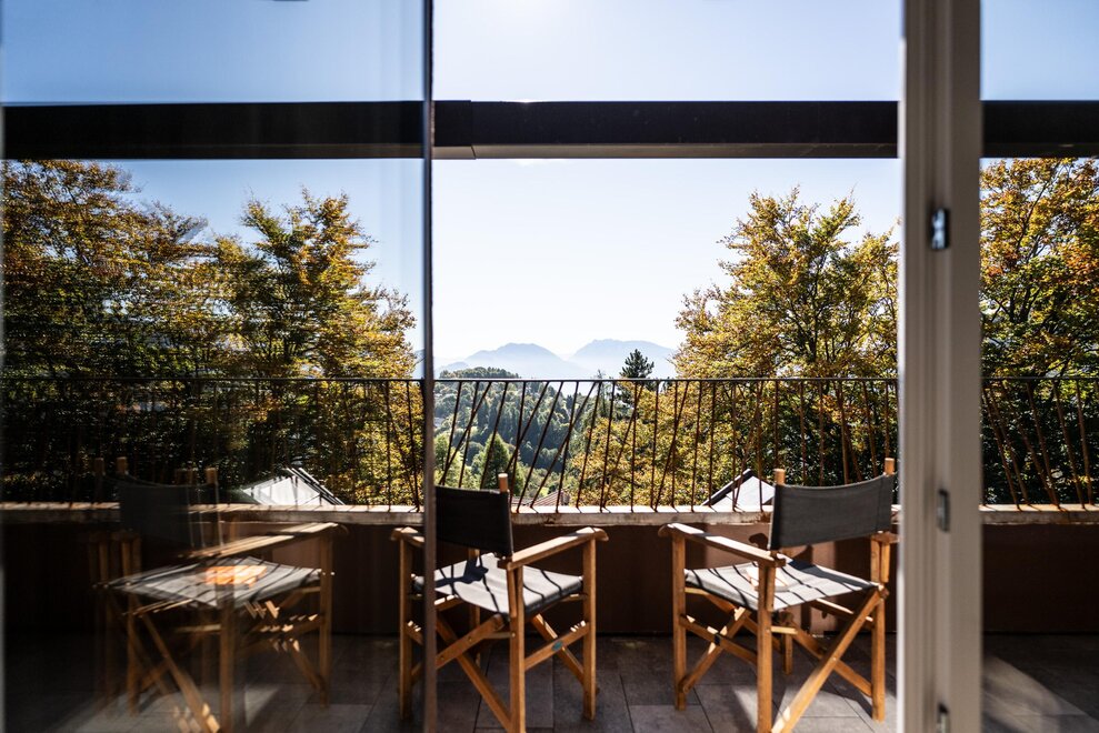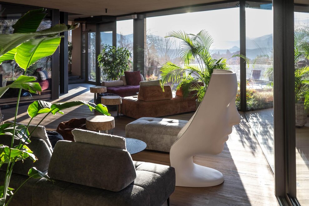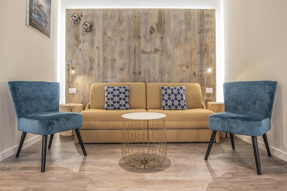 The interiors reflect a genuine passion for design and art: iconic pieces, artworks and vintage objects enrich the spaces, creating a refined yet welcoming atmosphere. The beautiful panoramic lounge, bright and inviting, is the perfect place to relax, read or enjoy a drink in an elegant setting.