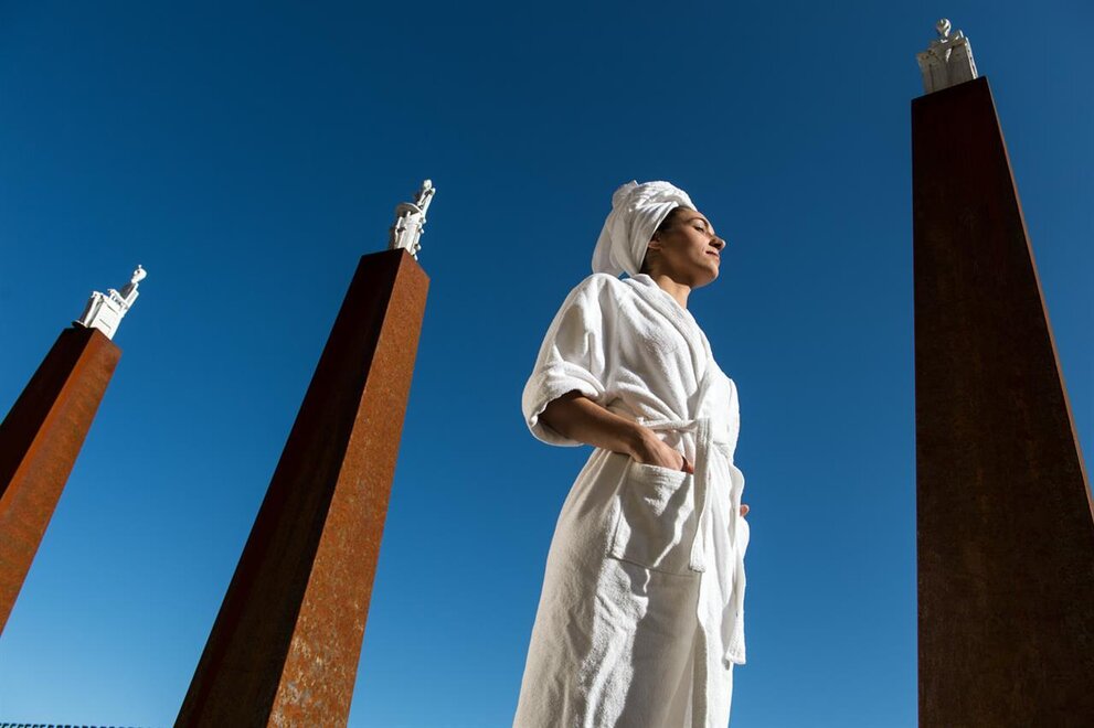 Wellbeing is at the heart of the experience with a SPA featuring 8 pools, including indoor and outdoor heated pools with temperatures between 33°C and 36°C, a refined Beauty Farm and a precious oligomineral spring. The wellness area also includes a large sauna area of over 1000 sqm, designed for deep relaxation and regeneration.